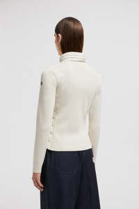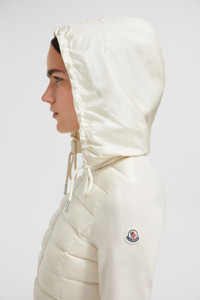 Designed to be worn throughout the year, this wool cardigan for women is enriched with a padded front. Designed for a transitional wardrobe, this cardigan doubles as outerwear during milder weather. The zip-up style is crafted from plush Merino wool with a warm down-filled front and collar. DETAILS - Crafted from stretch ultra-fine Merino wool - Longue saison lining - Down-filled longue saison collar and front - Milano stitch - Gauge 12 - Longue saison pull-out hood - Zipper closure - Zipped pockets SIZE AND FIT - The model is wearing a size XS and is 179 cm tall - The model measures: bust 77 cm, waist 59 cm, hips 87 cm - Slim fit COMPOSITION OUTER FRONT: 100% Polyamide / Nylon; BASE FABRIC: 95% Virgin wool, 5% Polyester; FRONT LINING: 100% Polyamide / Nylon; PADDING: 90% Down, 10% Feather Product code K10939B00006M112220F Made in Tunisia