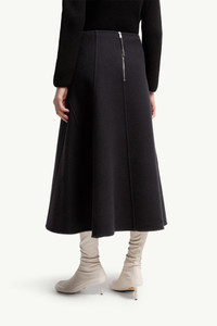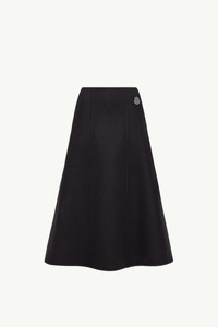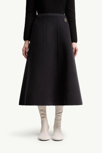 The Moncler + JIL SANDER wool midi skirt for women embodies a dialogue between softness and structure. A study in volume, this Moncler + JIL SANDER midi skirt is defined by a flared silhouette. Crafted from washed double wool, the design balances structure and fluidity. The co-creation's logo completes the design. DETAILS - Crafted from double wool - Zipper closure with leather puller - Detachable metal logo pin SIZE AND FIT - The model is wearing a size 40 and is 176 cm tall COMPOSITION BASE FABRIC: 100% Virgin wool;LEATHER INSERTS: LAMB Product code K24052D00008M6407742 Made in Italy