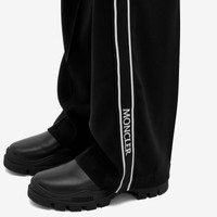 Keep things casual with Moncler this season. These trousers are crafted from polyester, offering a comfortable all-day wear. The waistband is adjustable for a custom fit and the design is rounded off with logo jacquard stripes down the legs. A must-have for off-duty days. - 98% Polyester, 2% Elastane - Elasticated Drawstrings Waistband - 2 Side Pockets - Logo Jacquard Stripes - Made in Italy