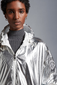 A focus on function: the hooded Jubba jacket is made to protect from the rain. The practical women's style is reversible. Reinterpreting brand DNA with a young, contemporary twist, the Jubba rain jacket plays with textures. The reversible style boasts one high-gloss face crafted from coated nylon, and one matte face made from recycled rainwear. - Crafted from coated nylon - Recycled rainwear lining - Reversible - Adjustable hood - Reversible zipper closure - Two welt zipped pockets - Elastic hood and hem - Embroidered logo COMPOSITION AND CARE EXTERIOR: 100% Polyamide / Nylon; LINING: 100% Polyamide / Nylon; HOOD LINING: 100% Polyamide / Nylon Hand wash; Do not bleach; Do not tumble dry; Do not iron; Do not dry clean; Do not professionally wet clean; Flat dry in the shade; Wash separately; Do not twist or wring; do not soak; It is advisable to wash with the garment on reverse. Product code I20931A00062596WHM93 Made in Italy or Romania
