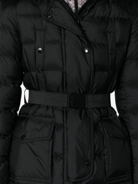Khloe hooded down coat Highlights - Black - Goose down/shearling - Quilted - Padded design - Logo-engraved buttons - Logo patch at the sleeve - Drawstring hood - High neck - Branded zip puller - Front press-stud and zip fastening - Long sleeves with elasticated cuffs - Belt loops - Belted waist - Two front stud-fastening pockets - Curved hem - Mid-length - Full lining Imported Composition Outer: Polyamide 100%, Sheep Skin/Shearling 100% Lining: Polyamide 100%, Goose Down 90%, Goose Feather 10% SIZE & FIT Model measurements Height 5 ft 11 in(1.8 m) Bust/Chest 32.67 in(83 cm) Hips 36.22 in(92 cm) Waist 25.19 in(64 cm) FittingInformation Designed to be unstructured, offering a loose fit throughout The belt offers adjustability for fitted preferences Made from a padded non-stretch fabric, giving it no natural elasticity This piece fits true to size – take your usual size Washing instructions Machine Wash