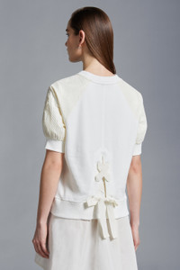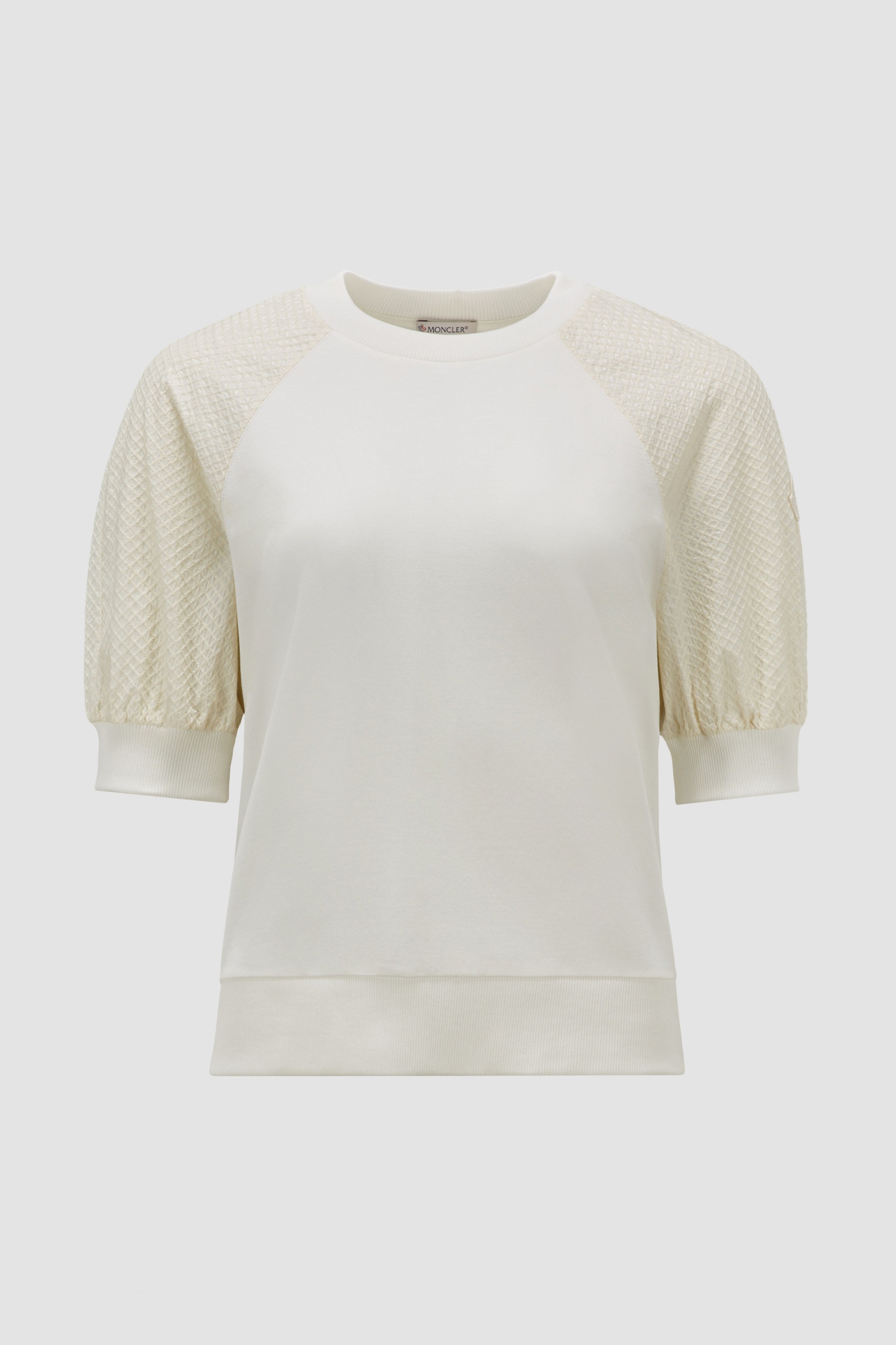 A tribute to creativity, this lace-up top for women is characterized by its graphic texture. An exploration of creativity and individuality, this t-shirt boasts textural rhombus-pattern stitching on the sleeves. The oversized crew neck is finished with lacing on the back. - Crafted from lightweight cotton fleece - Crew neck - Short sleeves - Grosgrain logo patch lettering - Lace-up closure on the back SIZE AND FIT - The model is wearing a size XS and is 179 cm tall - The model measures: bust 77 cm, waist 59 cm, hips 87 cm - Oversized fit COMPOSITION AND CARE BASE FABRIC: 100% Cotton; SLEEVES: 100% Polyamide / Nylon; Ribs: 97% Cotton, 3% Elastane / Spandex; Embroidery: 77% Cotton, 23% Polyester Do not wash; Do not bleach; Do not tumble dry; Ironing maximum temperature 110°C - without steam; Dry cleaning in tetrachloroethene or with hydrocarbons - mild process; Do not professionally wet clean; Flat dry in the shade; Wash separately; Wash inside out; DO NOT IRON NYLON PARTS; Iron inside out Product code J10938C0002789A1K034 Made in Turkey