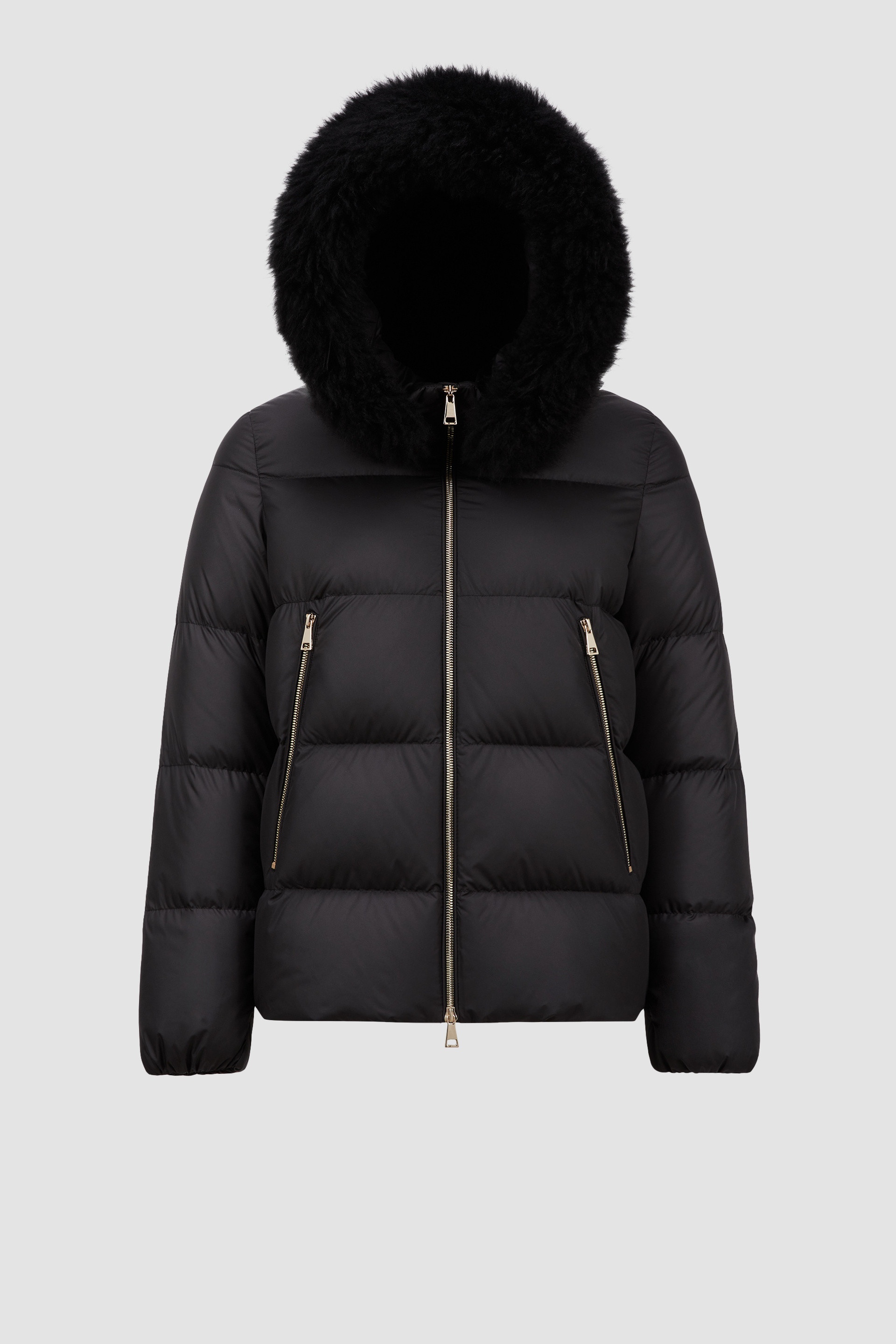 Timelessly elegant, the Laichefur short down jacket from the women's collection is enriched with a detachable shearling collar. Designed to accompany you throughout the day, the Laichefur down jacket is practical yet feminine. The hooded puffer is crafted from brushed polyester, enhanced by a sophisticated matte finish. Offering adaptable protection, a detachable shearling collar completes the warmer. DETAILS - Crafted from brushed polyester - Longue saison lining - Down-filled - Hood - Detachable shearling collar - Zipper closure - Zipped pockets SIZE AND FIT - The model is wearing a size 0 and is 180 cm tall - The model measures: bust 78 cm, waist 58 cm, hips 88 cm - Regular fit - Slim shoulders - Flared waist and hips COMPOSITION EXTERIOR: 100% Polyester; LINING: 100% Polyamide / Nylon; PADDING: 90% Down, 10% Feather;Leather with hair 1: GOAT Product code J20931A0017454AQE999 Made in Armenia or Moldova