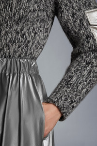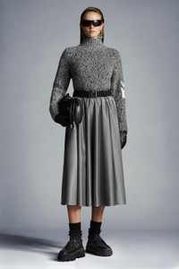 This coated fabric midi skirt combines Moncler’s signature spirit and a feminine attitude that will add an authentic, sophisticated note to any look. This midi skirt is characterized by its pleated A-line design and elasticized waistband that helps to enhance the silhouette. The style is crafted in coated nylon with a sophisticated shiny texture. - Midi skirt for women - Crafted in coated nylon - Elasticized waistband - Quarter-top side pockets - Metal Moncler logo on back SIZE AND FIT - The model is wearing a size 40 and is 179 cm tall COMPOSITION AND CARE BASE FABRIC: 100% Polyamide / Nylon Wash max 30°C - Mild process; Do not bleach; Do not tumble dry; Ironing maximum temperature 110°C - without steam; Do not dry clean; Professional wet cleaning - mild process; Flat dry in the shade; Wash separately; It is advisable to wash and iron the garment on reverse. Product code G20932D0002153A3H915 Made in Italy