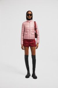 An iconic Moncler design for women, the Lans short down jacket in an essential warmer for mild weather. Designed to transcend seasons and trends, the Lans down jacket comes in a streamlined silhouette. Crafted from nylon leger, the short puffer plays with geometry: having the classic boudin quilting enlivened with patch pockets. Profoundly practical, the lightweight warmer is easily packable. DETAILS - Crafted from nylon leger - Nylon leger lining - Down-filled - Packable - Stand collar with snap button closure - Zipper closure - Patch pockets with snap button closure - Felt logo patch SIZE AND FIT - The model is wearing a size 0 and is 178 cm tall - The model measures: bust 80 cm, waist 60 cm, hips 87 cm - Slim fit COMPOSITION EXTERIOR: 100% Polyamide / Nylon; LINING: 100% Polyamide / Nylon; PADDING: 90% Down, 10% Feather Product code J20931A1010053048U1B Made in Moldova