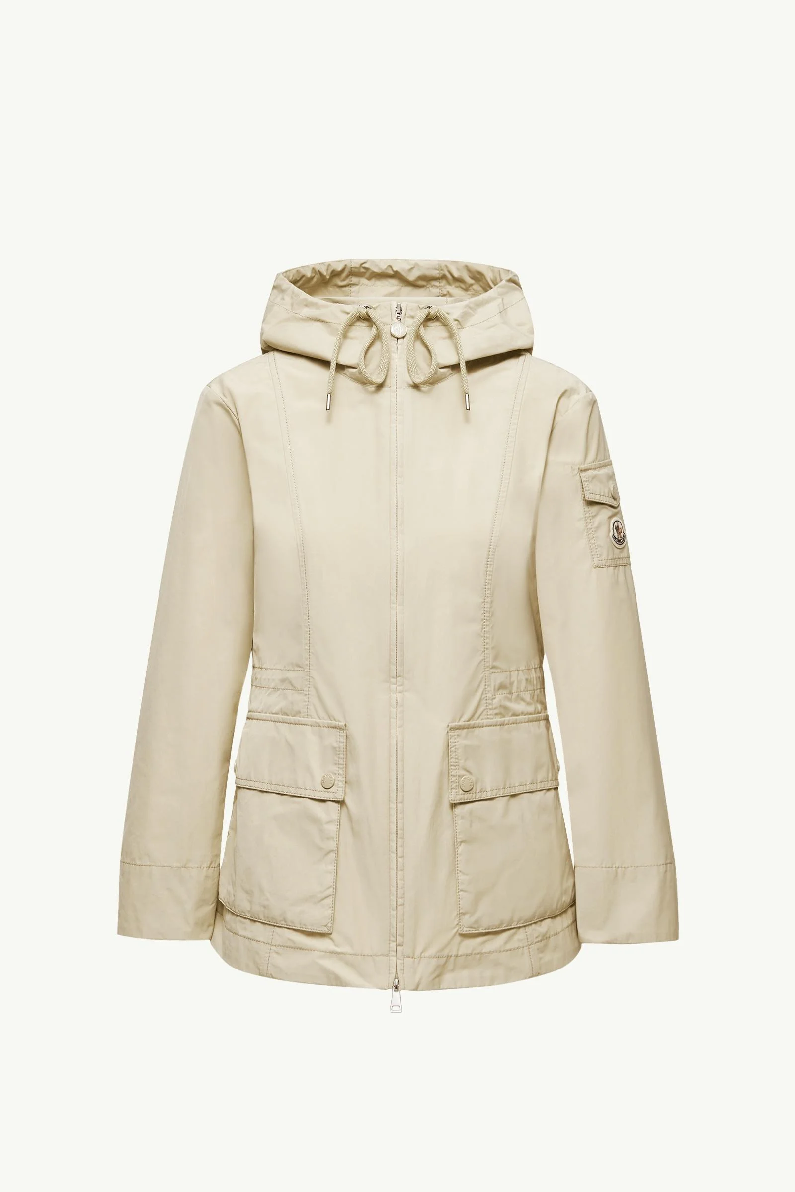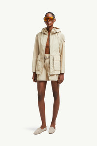 The hooded Leandro parka jacket is a practical addition to a woman's wardrobe. A mild-weather favorite, the Leandro parka is crafted from poplin technique. The hooded jacket owes its feminine shape to a fitted waist, easily adjusted by a drawstring in the back. Spacious patch pockets complete the look. DETAILS - Crafted from poplin technique - Adjustable hood - Zipper closure - Patch pockets with snap button closure - Sleeve pocket - Waistband with drawstring fastening SIZE AND FIT - The model is wearing a size 0 and is 180 cm tall - Regular fit - Fitted waist - Elasticized belt - Length (collar to hem): 70 cm COMPOSITION EXTERIOR: 63% Polyester, 37% Cotton; HOOD LINING: 63% Polyester, 37% Cotton Product code L10931A00144549P320J Made in Italy