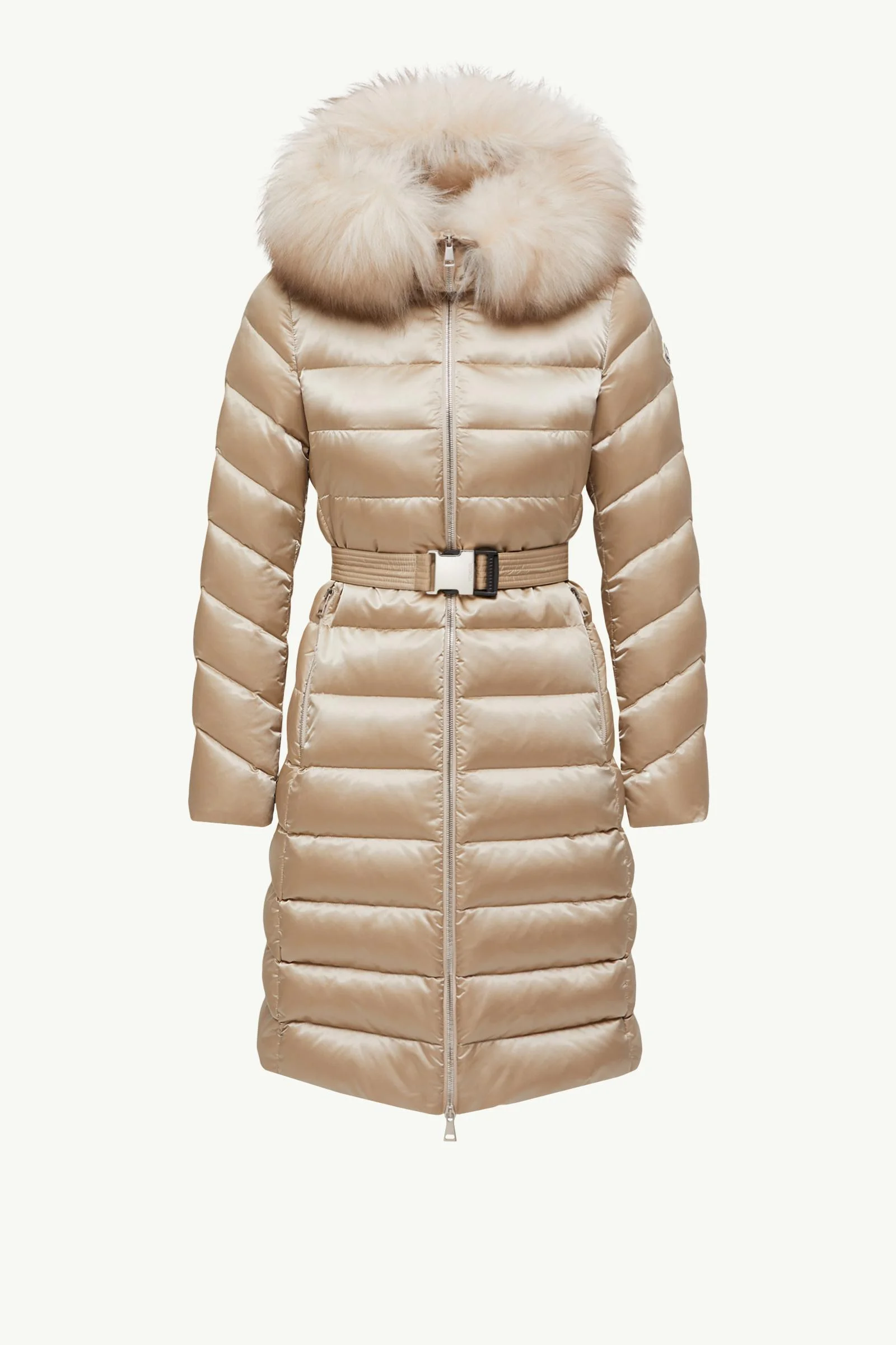 A chic addition to a woman's wardrobe, the Leersie long down jacket is easily layered over day and eveningwear, boasting a long-haired shearling trim. Designed for women with a timeless taste, the Leersie down coat is a classic style crafted from nylon with a satin-feel. A feminine silhouette is achieved with a detachable belt, while a long-haired shearling trim on the hood adds a hint of glamour to the long puffer. DETAILS - Crafted from nylon satin - Nylon lining - Down-filled - Hood with a detachable long-haired sheepskin trim and nylon satin lining - Zipper closure - Zipped pockets - Detachable and adjustable belt SIZE AND FIT - Regular fit - Fitted waist - Elasticized belt - Length (collar to hem): 94 cm COMPOSITION EXTERIOR: 100% Polyamide / Nylon; LINING: 100% Polyamide / Nylon; HOOD LINING: 100% Polyamide / Nylon; PADDING: 90% Down, 10% Feather;Leather with hair 1: SHEEP; Origin: China; Dyed Product code K20931C0003559685229 Made in Armenia