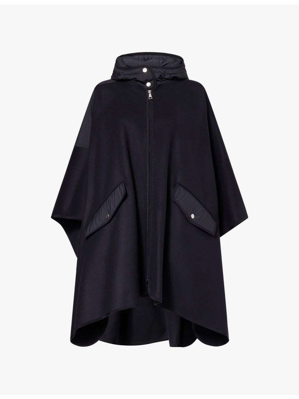 PRODUCT DETAILS - Moncler woven cape - 100% polyester - Zip fastening - Relaxed fit, funnel neck, hood, pockets at front, branded hardware - Dry clean - Model is 5ft 10in / 1.78m and wears one size - Midweight, non-stretch Ref: R04569352