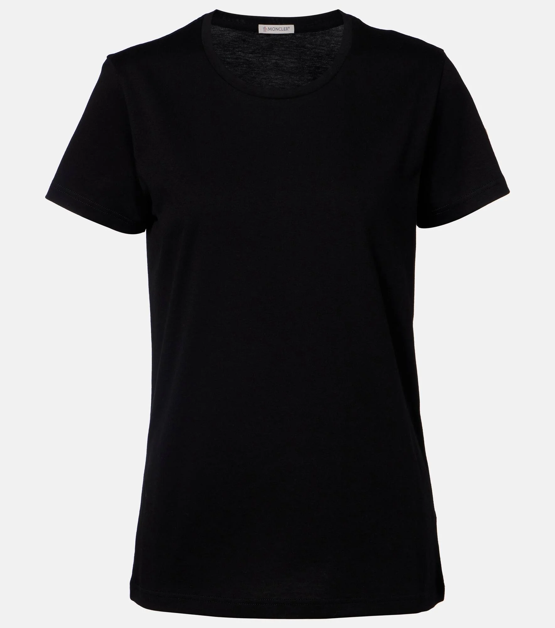 Committed to precision and performance, Moncler champions technical and innovative designs. This T-shirt is crafted from soft cotton jersey and features the brand's signature logo patch at the arm. Product Details - Material: 100% cotton - Care instructions: machine wash at 30 degrees - Made in Romania - Designer color name: Black - Item color: black - Collar: crewneck - Item number: P01127246 Size & Fit - True to size - Straight fit - Slightly stretchy fabric - Falls below the hip - The model seen in the picture is 178cm-5'10" and wearing a size XS