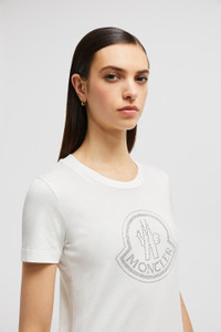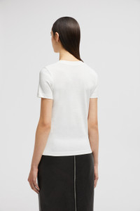 Easily dressed up or down, this cotton t-shirt for women boasts a crystal-encrusted logo motif. A wardrobe staple, this crew neck t-shirt is crafted from the softest cotton jersey. The slim fit style is adorned with a crystal logo motif, in a nod to a collection inspired by the concept of light and glimmer. DETAILS - Crafted from lightweight cotton jersey - Crew neck - Short sleeves - Crystal-encrusted logo SIZE AND FIT - The model is wearing a size XS and is 180 cm tall - The model measures: bust 78 cm, waist 58 cm, hips 88 cm - Slim fit COMPOSITION BASE FABRIC: 100% Cotton; Ribs: 100% Cotton Product code J20938C00017829FB033 Made in Turkey