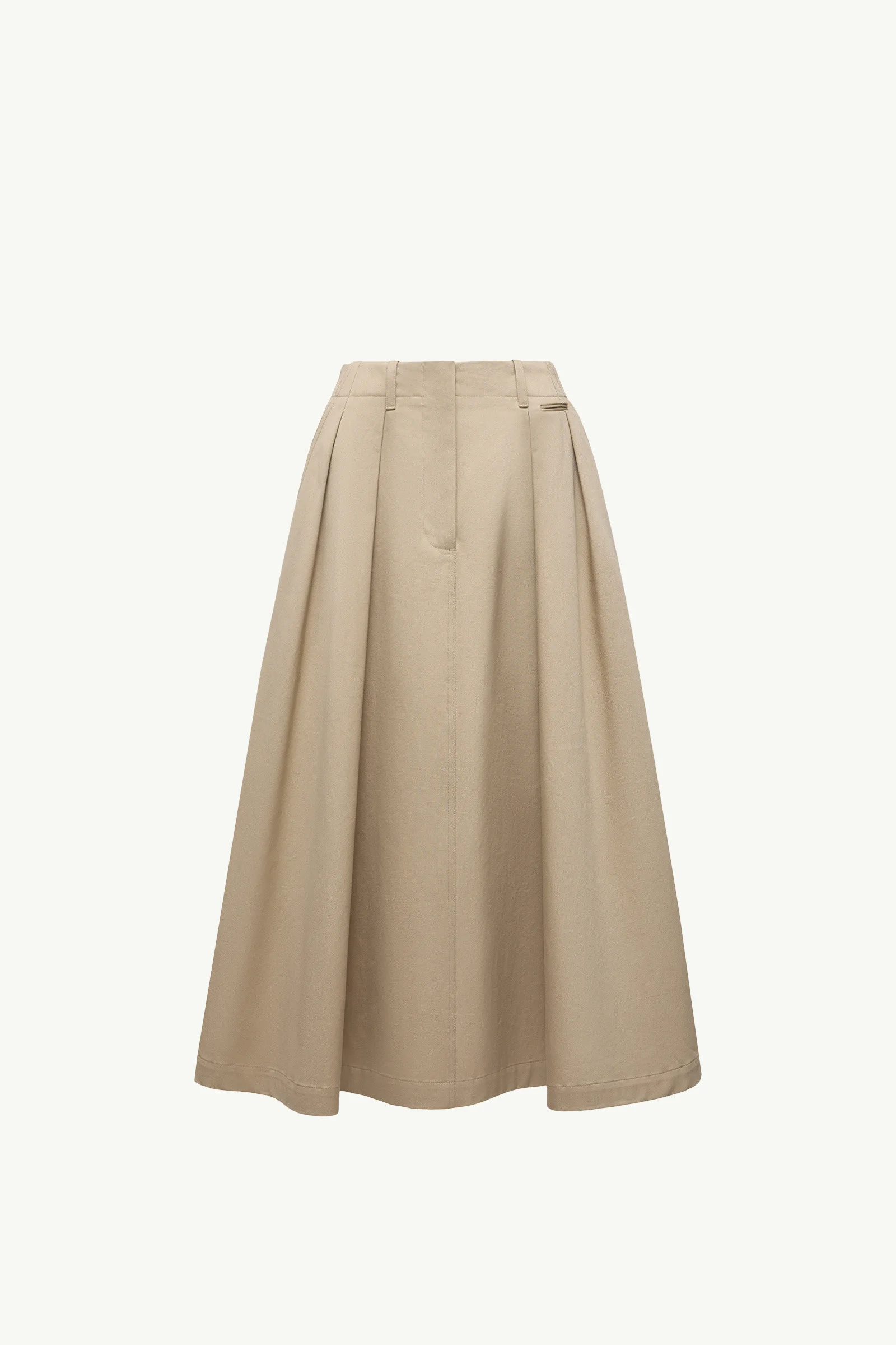 Synonymous with comfortable elegance, this midi skirt from the women's collection is crafted from cotton gabardine. Softly pleated, this mid-length skirt encapsulates the collection's feminine aesthetic. The cotton gabardine design is completed by a logo label, subtly nodding to brand heritage. DETAILS - Crafted from cotton gabardine - Cotton twill lining - Zipper closure - Belt with hook losure - Side pockets - Logo label SIZE AND FIT - The model is wearing a size 38 and is 177 cm tall COMPOSITION BASE FABRIC: 100% Cotton Product code K20932D00022598WH23P Made in Romania