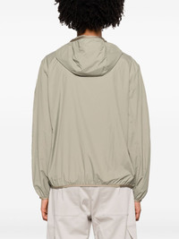 logo-patch hooded windbreaker jacket This beige Moncler jacket is cut from lightweight shell with elasticated trims block out draft and a two-way zip fastening that can be adjusted to control ventilation. Highlights - Sage green - Lightweight construction - Wind-resistant - Logo patch at the sleeve - Branded zip pullers - Slouchy hood - Front two-way zip fastening - Long sleeves with elasticated cuffs - Two side zip-fastening pockets - Unlined - Elasticated hem - Authenticity qr code Imported Composition Outer: Polyamide 100% Lining: Polyamide 100% SIZE & FIT Model measurements Height 5 ft 10 in(1.77 m) Bust/Chest 33.07 in(84 cm) Hips 37 in(94 cm) Waist 24.8 in(63 cm) FittingInformation Designed for a relaxed fit, this piece allows for comfort and movement when worn The elasticated hem allows for movement and a comfortable fit Made from a lightweight non-stretch fabric This piece fits true to size – take your usual size Washing instructions Machine Wash
