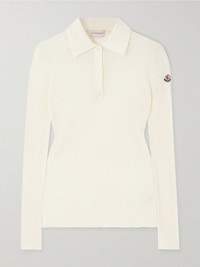 Moncler's top is made from slightly sheer cotton-blend and rib-knitted for a close fit. It has a classic polo collar and a signature logo appliqued on the sleeve. Details & Care - Off-white cotton-blend - Button fastenings along front - 82% cotton, 18% polyamide - Dry clean