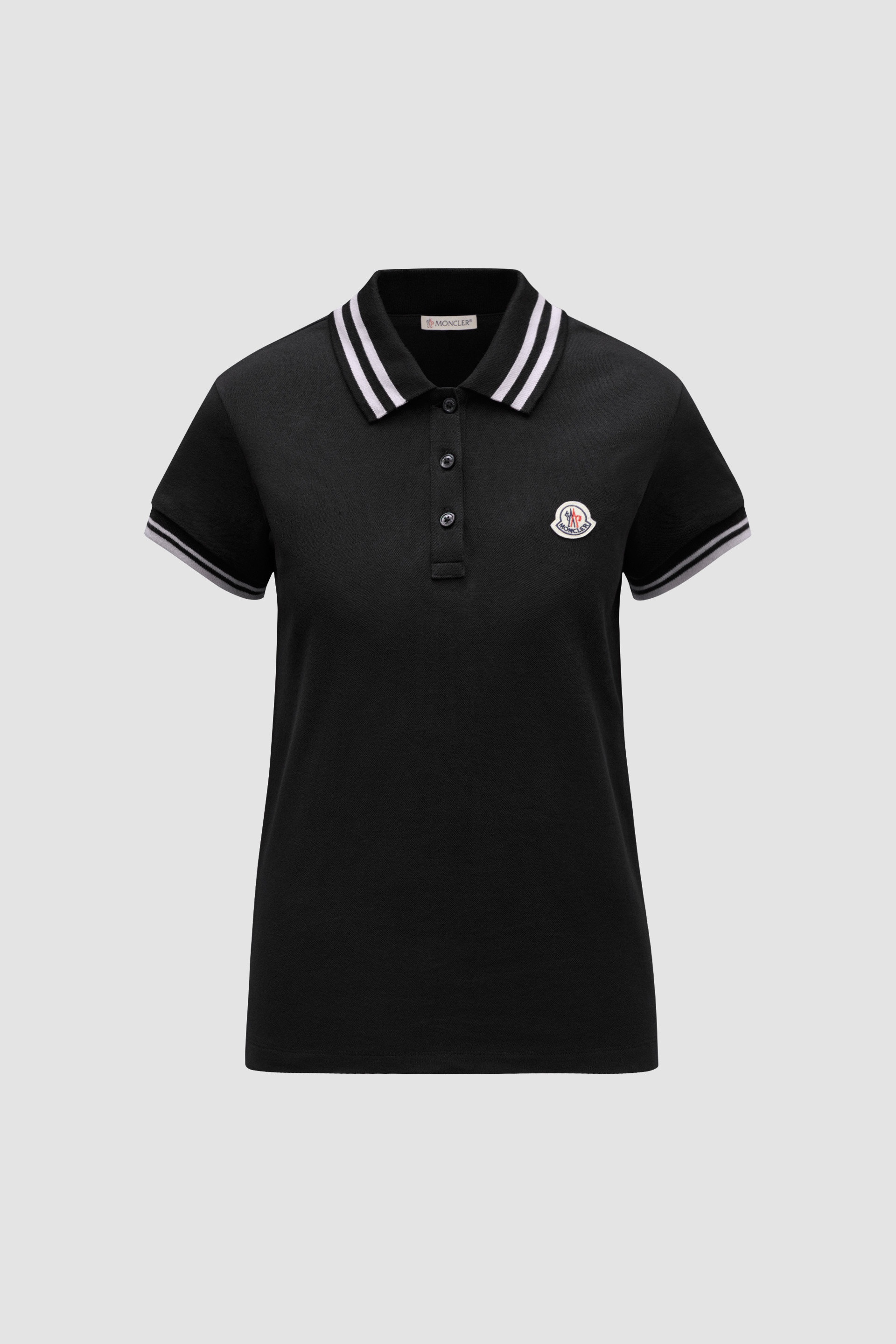 Casualwear meets luxury in this polo shirt for women crafted from cotton piquet. A sportswear staple, this polo shirt is crafted from cotton piquet. The classic style for women is embellished with a felt logo patch on the chest, a distinct Moncler design code. - Crafted from cotton piquet - Collar with button closure - Short sleeves - Felt logo patch SIZE AND FIT - The model is wearing a size S and is 177 cm tall - The model measures: bust 81 cm, waist 60 cm, hips 90 cm - Slim fit COMPOSITION AND CARE BASE FABRIC: 100% Cotton; Ribs: 99% Cotton, 1% Elastane / Spandex Wash max 30°C - Mild process; Do not bleach; Do not tumble dry; Ironing maximum temperature 110°C - without steam; Dry cleaning in tetrachloroethene or with hydrocarbons - mild process; Professional wet cleaning - mild process; Flat dry in the shade; Wash separately; Wash inside out; Iron inside out Product code J10938A0000984720999 Made in Turkey