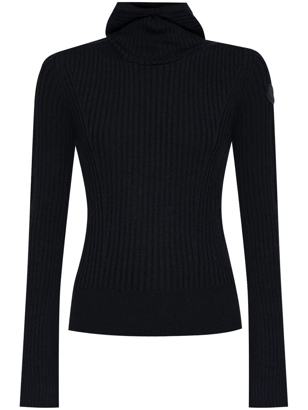 logo-patch ribbed hoodie Highlights - Black - Wool blend - Ribbed knit - Logo patch at the sleeve - Classic hood - Long sleeves - Straight hem Imported Composition Acrylic 50%, Wool 50%
