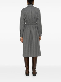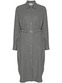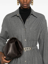 logo-patch shirt dress Highlights - Gunmetal grey - Wool blend - Twill weave - Melange effect - Logo patch at the sleeve - Classic collar - Front press-stud fastening - Long sleeves - Press-stud fastening cuffs - Two chest patch pockets - Two side inset pockets - Belt loops - Adjustable waist belt - Curved hem - Mid-length Made in Italy Composition Outer: Calf Leather 100%, Wool 50%, Polyester 18%, Viscose 18%, Polyamide 13%, Elastane 1% Lining: Polyamide 100% SIZE & FIT Model measurements Height 5 ft 10 in(1.78 m) Bust/Chest 31.49 in(80 cm) Hips 37 in(94 cm) Waist 23.62 in(60 cm) FittingInformation Designed to be unstructured, offering a loose fit throughout The belt offers adjustability for fitted preferences Made from a midweight stretch fabric, this piece offers elasticity and flexibility when worn This piece fits true to size – take your usual size