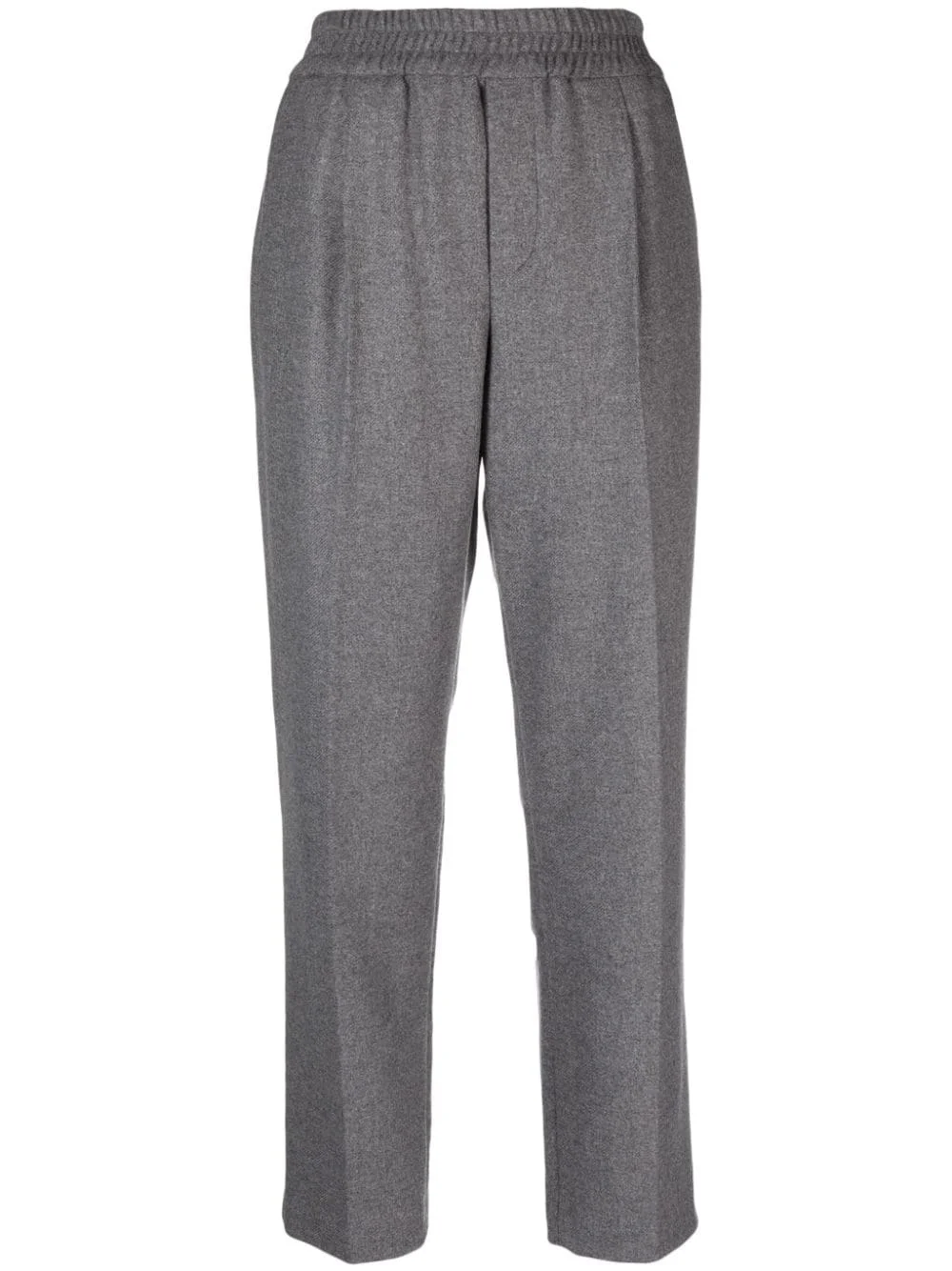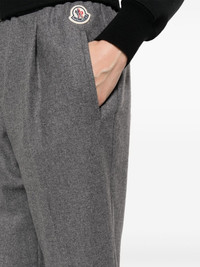 logo-patch track pants Moncler combines activewear silhouettes with classic detailing in these track pants. Spun from a wool blend, its elasticated waistband falls into a sophisticated tapered leg adorned with a logo patch and some pleat detailing. Highlights - Medium grey - Wool blend - Melange effect - Logo patch to the side - Elasticated waistband - Pleat detailing - Two diagonal pockets to the sides - Two rear welt pockets - Tapered leg Imported Composition Outer: Wool 78%, Polyamide 21%, other fibers 1% Lining: Polyamide 100% SIZE & FIT Model measurements Height 5 ft 10 in(1.78 m) Bust/Chest 30.7 in(78 cm) Hips 36.22 in(92 cm) Waist 25.59 in(65 cm) FittingInformation Designed for a tapered fit, these trousers allow for a close fit at the waist and a loose unrestricted fit over the leg with a closer fit towards the ankle The elasticated waist allows for a comfortable fit Made from a midweight non-stretch fabric This piece fits true to size – take your usual size Washing instructions Dry Clean Only