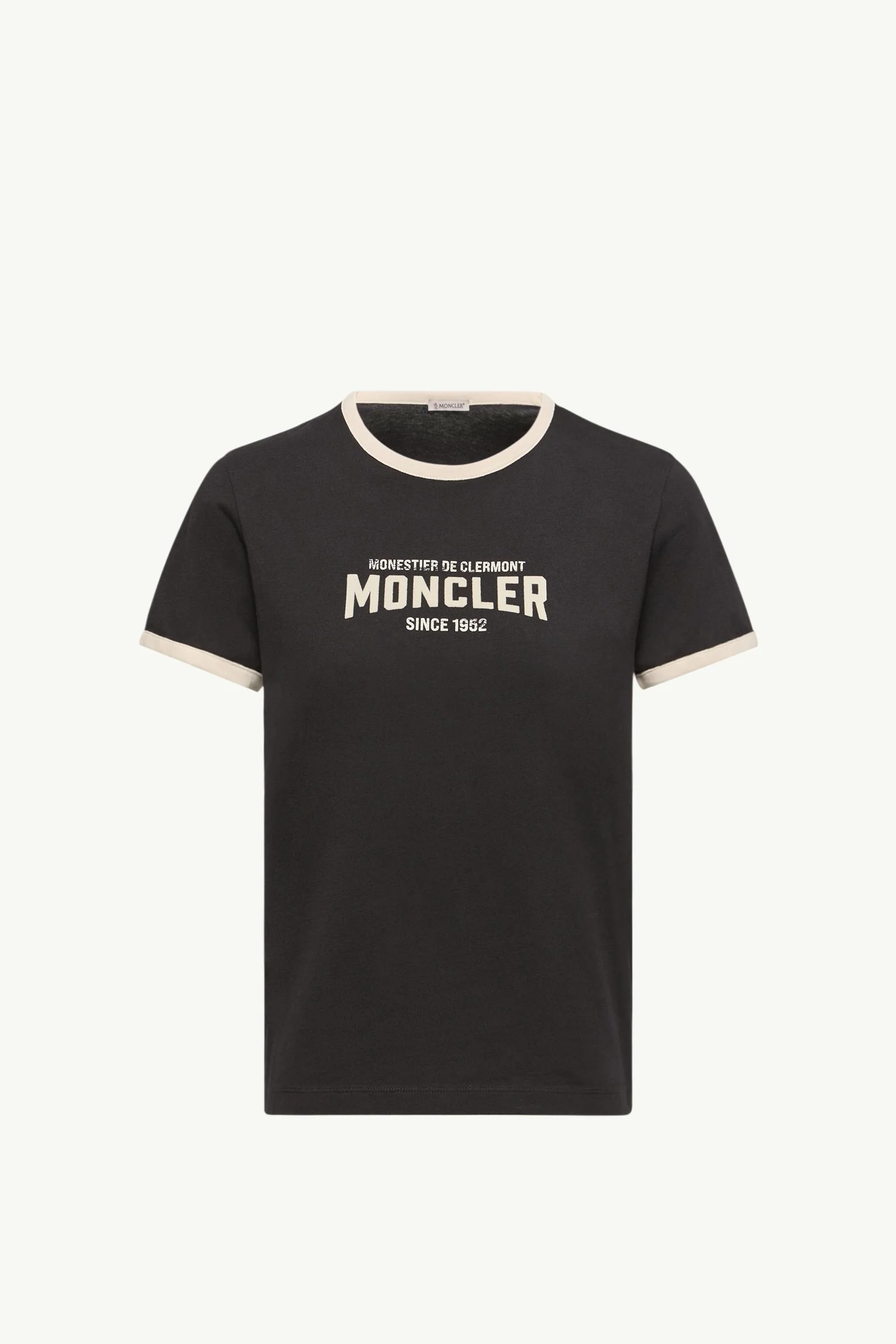 An easy essential for any season, this women's t-shirt's printed logo nods to the city where Moncler was born in 1952. Everyday layering made easy, this t-shirt comes in a short sleeve silhouette. The cotton crew neck is printed with a graphic logo while a contrasting trim adds a sporty finishing touch. DETAILS - Crafted from cotton jersey - Ribbed crew neck - Short sleeves - Logo prints SIZE AND FIT - Regular fit COMPOSITION BASE FABRIC: 100% Cotton; Collar rib: 100% Cotton; Cuffs rib: 100% Cotton Product code L10938C0003189AUOP90 Made in Turkey