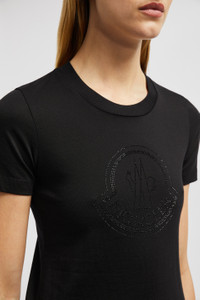 Easily dressed up or down, this cotton t-shirt for women boasts a crystal-encrusted logo motif. A wardrobe staple, this crew neck t-shirt is crafted from the softest cotton jersey. The slim fit style is adorned with a crystal logo motif, in a nod to a collection inspired by the concept of light and glimmer. DETAILS - Crafted from lightweight cotton jersey - Crew neck - Short sleeves - Crystal-encrusted logo SIZE AND FIT - The model is wearing a size XS and is 178 cm tall - The model measures: bust 78 cm, waist 61 cm, hips 92 cm - Slim fit COMPOSITION BASE FABRIC: 100% Cotton; Ribs: 100% Cotton Product code J20938C00017829FB999 Made in Turkey