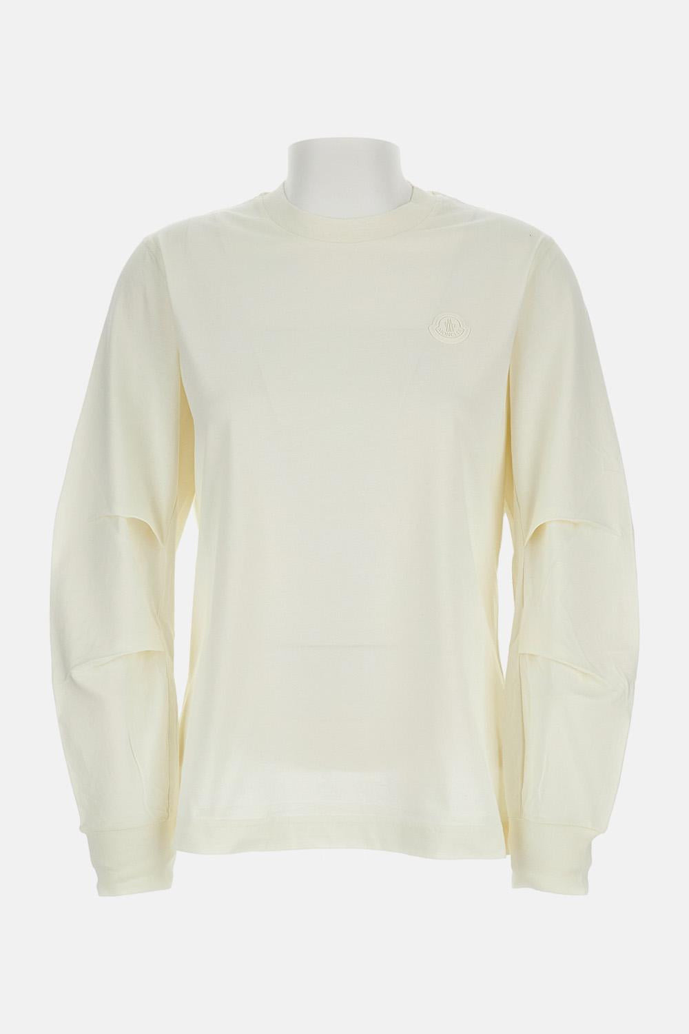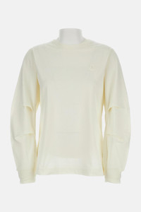Women's long-sleeve T-shirt with crew neck. Pience on sleeve. Logo application. Oversized fit. Color: cream Details and Care Color: White Composition: 100% CO Made in: Turchia Sku: 8D0000389A17034