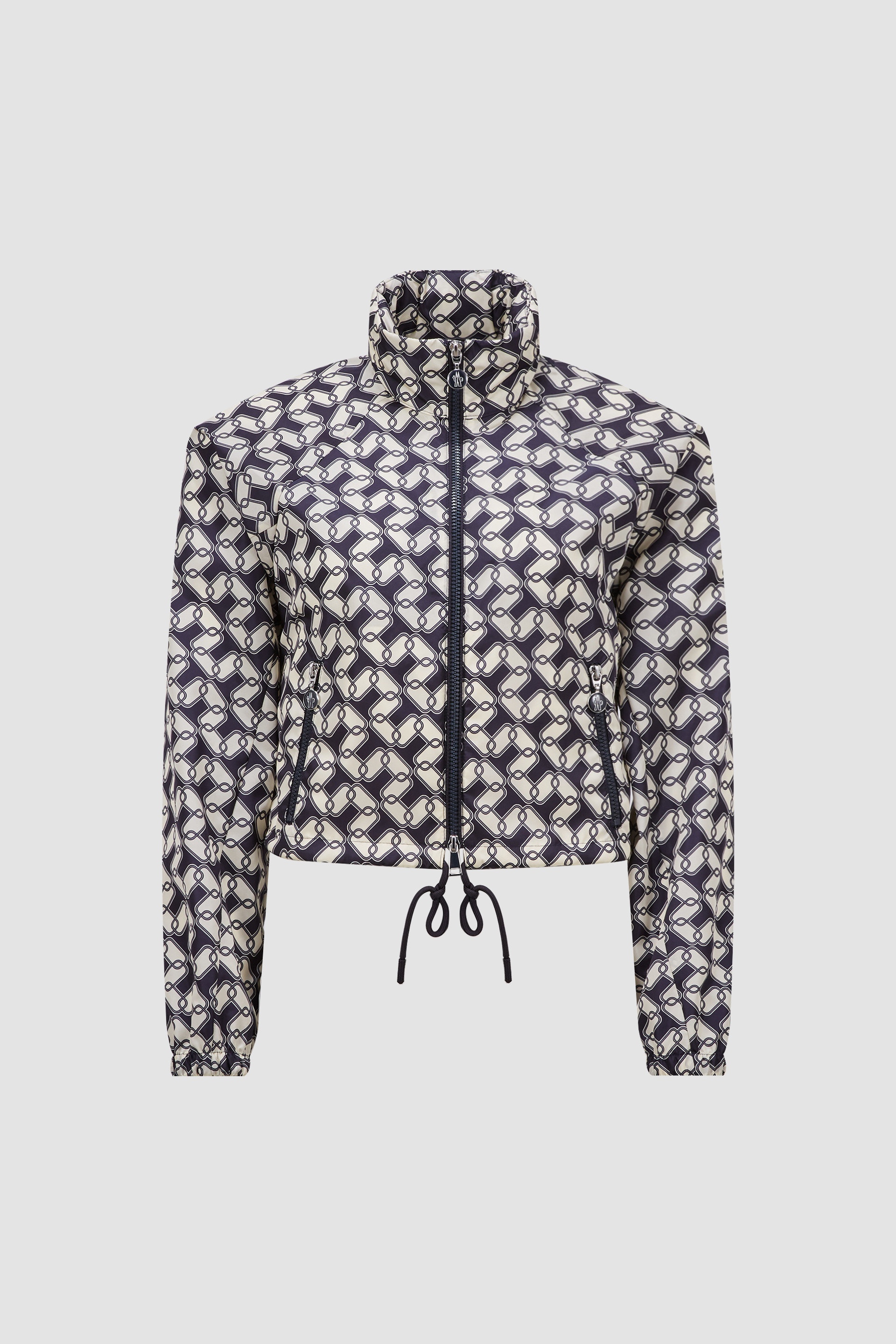 Inspired by summers in Biarritz, the lightweight Marpessa jacket for women is featured in shades of blue and white. A summer getaway must-pack, the Marpessa jacket is crafted from lightweight nylon in a navy and white chain print. The hooded jacket comes in a cropped fit, with an adjustable hemline. - Crafted from nylon - Nylon technique lining - Adjustable hood - Zipper closure - Zipped pockets - Hem with drawstring fastening - Elastic cuffs SIZE AND FIT - The model is wearing a size 0 and is 179 cm tall - The model measures: bust 77 cm, waist 59 cm, hips 87 cm - Regular fit - Cropped - Elasticized hemline COMPOSITION AND CARE BASE FABRIC: 100% Polyamide / Nylon Wash max 30°C - Very mild process; Do not bleach; Do not tumble dry; Ironing maximum temperature 110°C - without steam; Dry cleaning in tetrachloroethene or with hydrocarbons - mild process; Professional wet cleaning - very mild process; Flat dry in the shade; Wash separately; do not use steam iron; It is advisable to wash and iron the garment on reverse.; Iron with a cloth between Product code J10931A00141597MXF70 Made in Romania