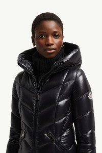 The Marus long down jacket for women boasts a flared silhouette and graphic quilting that enhances femininity. The Marus long down jacket is crafted from iconic nylon laque and is characterized by the chevron quilting that accentuates the silhouette. The down coat's hood, zipper pockets and the down quilting guarantee comfort and protection. DETAILS - Crafted from nylon laque - Nylon laque lining - Down-filled - Hood - Zipper closure - Zipped pockets - Elastic cuffs - Logo SIZE AND FIT - Slim fit - Length (collar to hem): 85 cm COMPOSITION EXTERIOR: 100% Polyamide / Nylon; LINING: 100% Polyamide / Nylon; HOOD LINING: 100% Polyamide / Nylon; PADDING: 90% Down, 10% Feather Product code K20931C00038C0065999 Made in Armenia