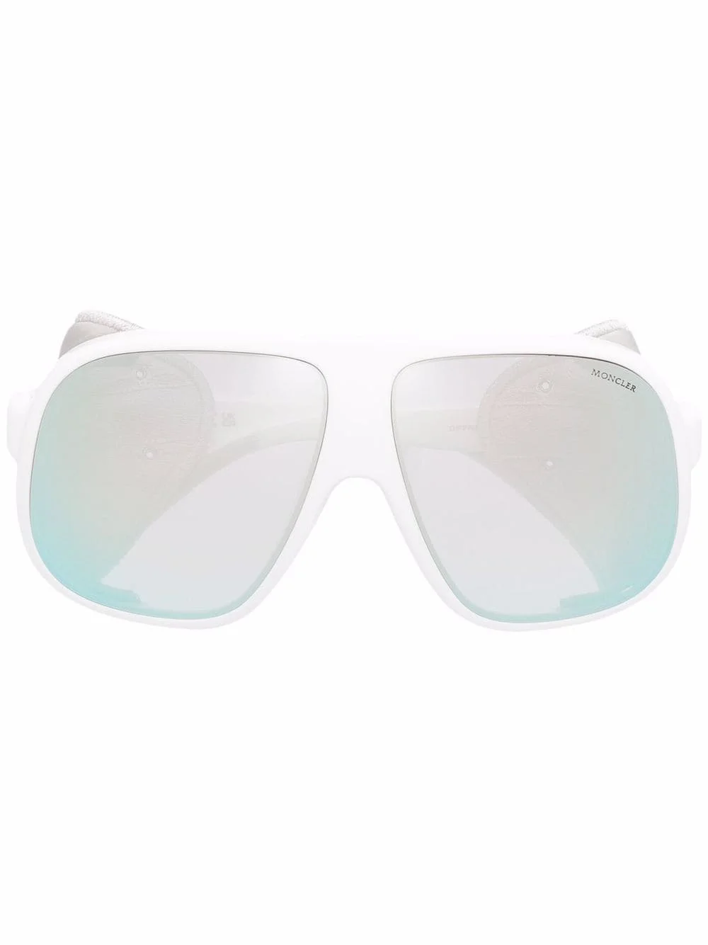 mask-frame sunglasses white acetate logo plaque at the arm oversize frame mirrored lenses straight arms These glasses come with a protective case. Made in Italy Composition Acetate 100%