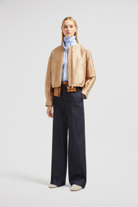 Characterized by a shimmering texture that captures the light, the women's Maupa down bomber jacket is crafted from duchesse. Encapsulating everyday luxury, the Maupa reimagines the bomber in duchesse. Ideal for milder weather, the fabric is supremely lightweight while a silky finish adds sophistication. The short down jacket comes in a relaxed fit, easy to layer over casual jeans or sophisticated shirts. DETAILS - Crafted from duchesse - Recycled longue saison lining - Grosgrain trim - Down-filled - Zipper closure - Open pockets - Adjustable cuffs - Hem with drawstring fastening SIZE AND FIT - The model is wearing a size 0 and is 179 cm tall - The model measures: bust 78 cm, waist 61 cm, hips 91 cm - Oversized fit COMPOSITION EXTERIOR: 100% Polyester; LINING: 100% Polyamide / Nylon; PADDING: 90% Down, 10% Feather;LEATHER TAG: COW LEATHER Product code K10931A00051598BZ20L Made in Romania