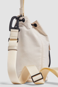 Compact and functional, the mini bucket bag is a practical accessory for men and women. Hand held or worn across the shoulder, this bucket bag is a versatile accessory. Crafted from durable fabrics, the mini bag is embellished with bold branding. DETAILS - Crafted from recycled water-repellent nylon - Nylon lining - Adjustable and detachable ribbon strap - Drawstring closure - Pocket with snap button closure - Nylon phone pocket - Silicone logo - Measurements H 17 cm x L 9 cm COMPOSITION EXTERIOR: 100% Polyester; LINING: 100% Polyamide / Nylon;LEATHER INSERTS: CALF Product code J209B6A00001M3873070 Made in Italy