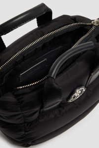 Hand-held or styled on the shoulder, the Caradoc micro nylon tote for women is a bag designed to withstand the test of time. An updated take on iconic Moncler down jackets, the Caradoc bag is crafted from recycled water-repellent nylon. Boasting an architectural, trapezoid shape, the micro tote fits your daily work or shopping essentials. DETAILS - Crafted from recycled water-repellent nylon - Nylon drill lining - Down-filled - Ribbon handles with leather grip - Adjustable and removable leather shoulder strap - Zip closure - Leather and metal logo - Measurements L 16,5 cm x H 13 cm x D 8 cm COMPOSITION EXTERIOR: 100% Polyamide / Nylon; LINING: 95% Cotton, 5% Acrylic; PADDING: 90% Down, 10% Feather;LEATHER INSERTS: CALF Product code J209B5L00009M4422999 Made in Hungary