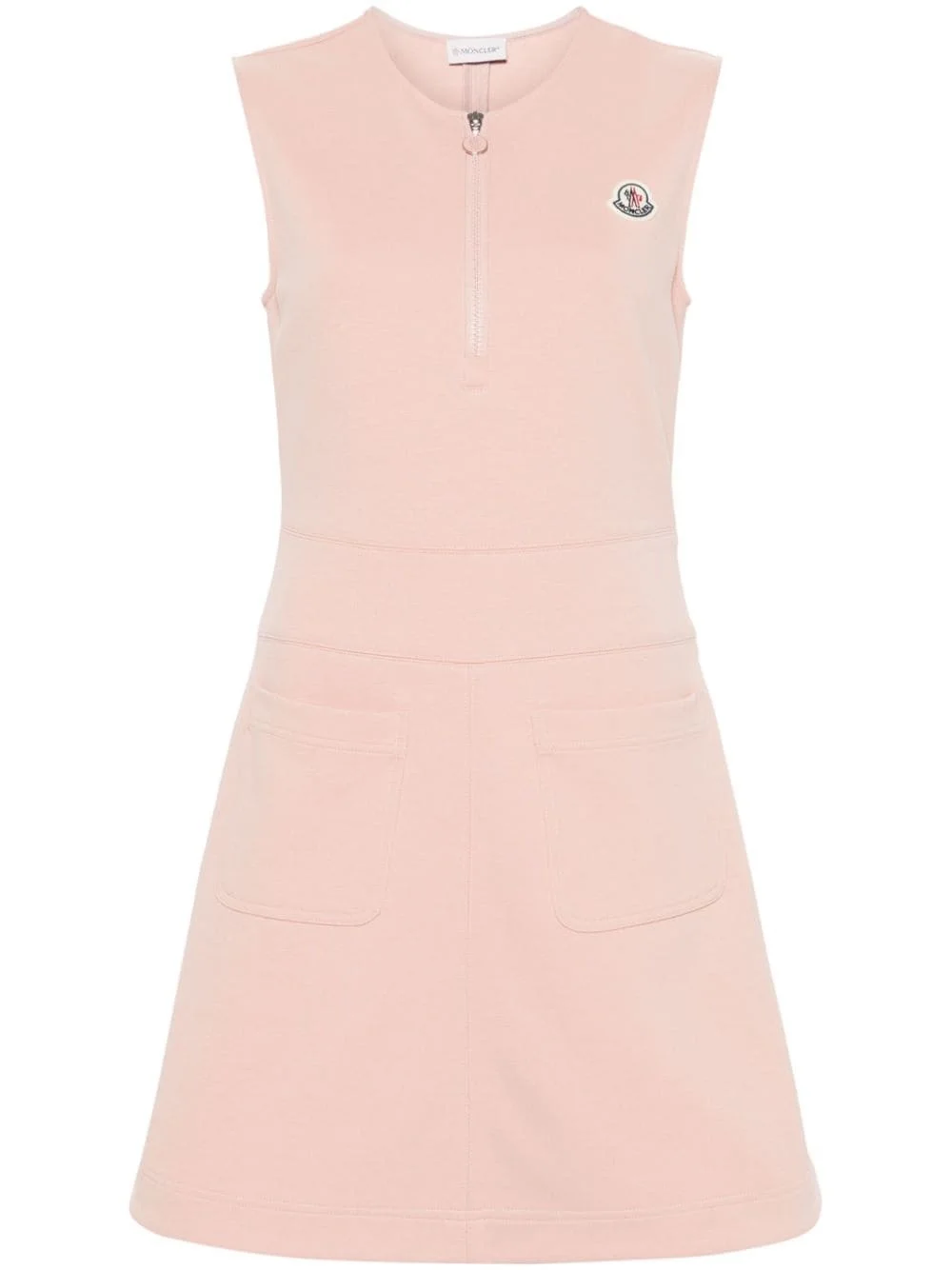 logo-applique mini dress Highlights - Light pink - Cotton blend - Seam detailing - Round neck - Sleeveless - Applique logo at the chest - Fitted waistline - Two front patch pockets - No lining - Short front zip fastening and concealed side zip fastening Made in Italy Composition Outer: Cotton 71%, Polyester 29% Lining: Cotton 100% SIZE & FIT Model measurements Height 5 ft 10 in(1.77 m) Bust/Chest 31.49 in(80 cm) Hips 35.82 in(91 cm) Waist 25.98 in(66 cm) FittingInformation Designed for a close fit at the chest and waist with a loose fit at the hip Made from a midweight non-stretch fabric, this piece offers minimal elasticity when worn This piece fits true to size – take your usual size Measurement BUST 34.01 in(86.4 cm) LENGTH 35 in(88.9 cm) WAIST 30 in(76.2 cm) HIPS 40 in(101.6 cm)
