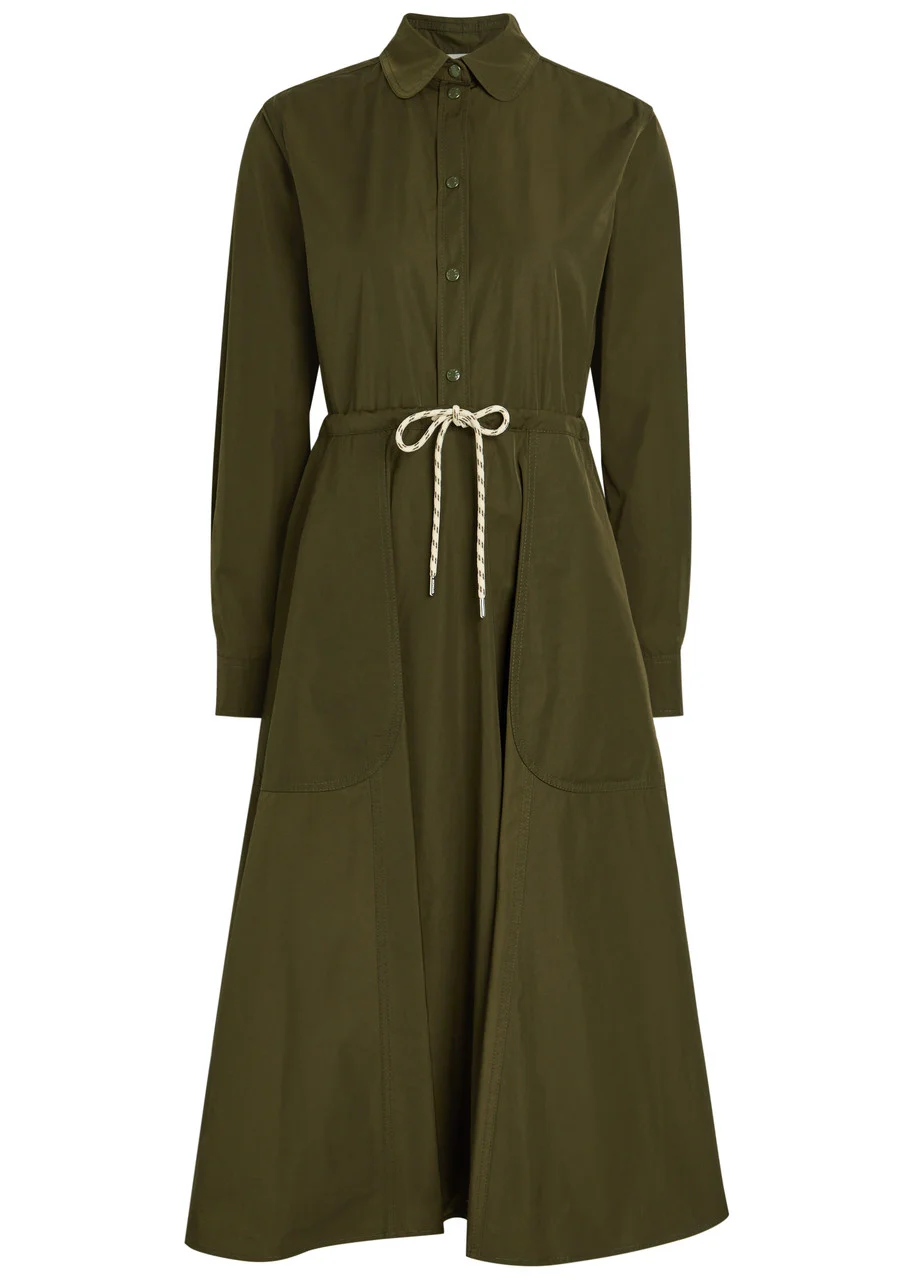 Moncler Drawstring Poplin Midi Shirt Dress