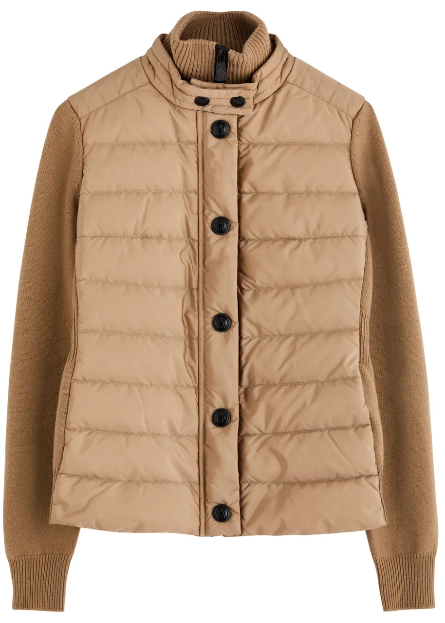 Moncler Logo Quilted Shell and Wool-blend Cardigan