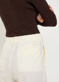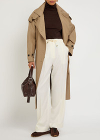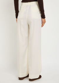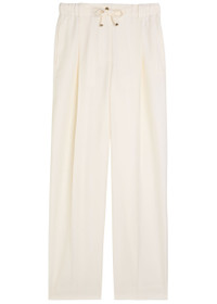 Info & Care Moncler wool trousers Drawstring at partially elasticated waist, pleats at waist, side slip pockets, pressed crease through legs, back slit pockets, leather designer tag Partially concealed press-stud and zip fastening at front 100% virgin wool Dry clean Size & Fit Inside leg length:;30 inches/ 76cm Midweight Straight-leg cut Designed to sit high on the waist Model is 5'10"/ 178cm and wears a size;IT40