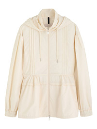 pleated hooded jacket Highlights - Off-white - Hooded neckline - Pleated detailing - Zip fastening - Drawstring hood - Cinched waist Made In Italy Composition Outer: Polyamide 100% Lining: Polyester 100% Washing instructions Read Manufacturer Guidelines