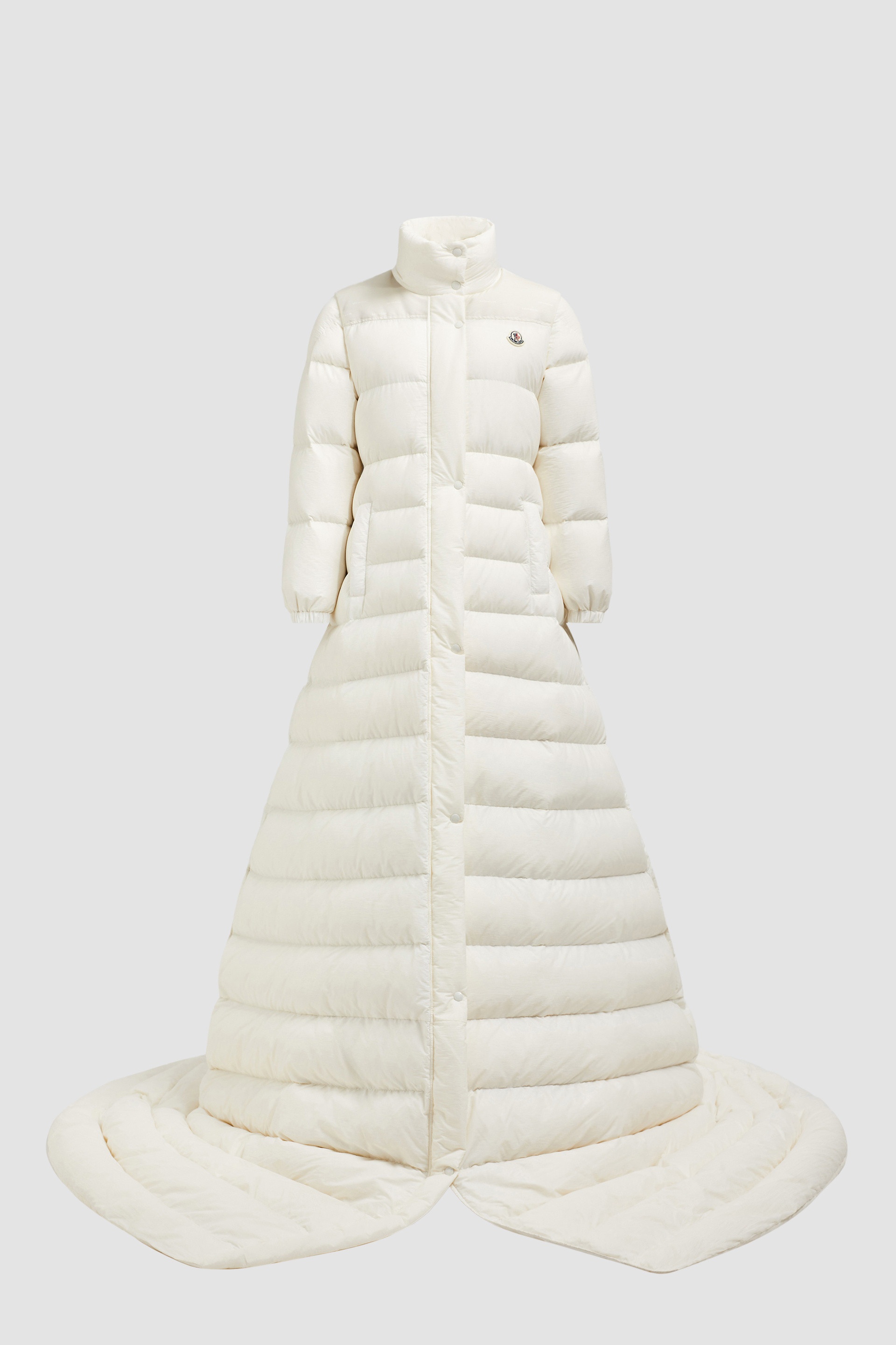 A red carpet worthy design, the ultra-long Moncler Verone down coat for women re-iconizes an icon. Instantly iconic, the new Moncler Verone floor-length puffer pushes the boundaries of functionality by delivering a message of constant innovation and research of the feminine silhouette. Crafted from coated nylon, the long down jacket is characterized by an ultra-soft hand and exceptional tear resistance. With easily detached sleeves, the down coat transforms into a long vest. Logo canvas adorns the yoke of the 2-in-1 style, while drawstring fastening on the waist allows for a personalized fit. - Crafted from coated washed nylon - Polyester lining - Down-filled - Nylon canvas jacquard yoke - Detachable sleeves - Zipper and snap button closure - Zipped pockets - Waistband with drawstring fastening SIZE AND FIT - The model is wearing a size 0 and is 177 cm tall - The model measures: bust 82 cm, waist 58 cm, hips 86 cm - Regular fit - Cropped - Drawstring allows personalization COMPOSITION AND CARE EXTERIOR: 100% Polyamide / Nylon; LINING: 100% Polyester; PADDING: 90% Down, 10% Feather; 1 MATERIAL: 100% Polyamide / Nylon Hand wash; Do not bleach; Do not tumble dry; Do not iron; Dry cleaning with hydrocarbons - mild process; Do not professionally wet clean; Flat dry in the shade; Wash separately; do not soak; It is advisable to wash with the garment on reverse.; Do not twist or wring; PROTECT TRIMS WHILE WASHING Product code J20931C000485985T034 Made in Romania