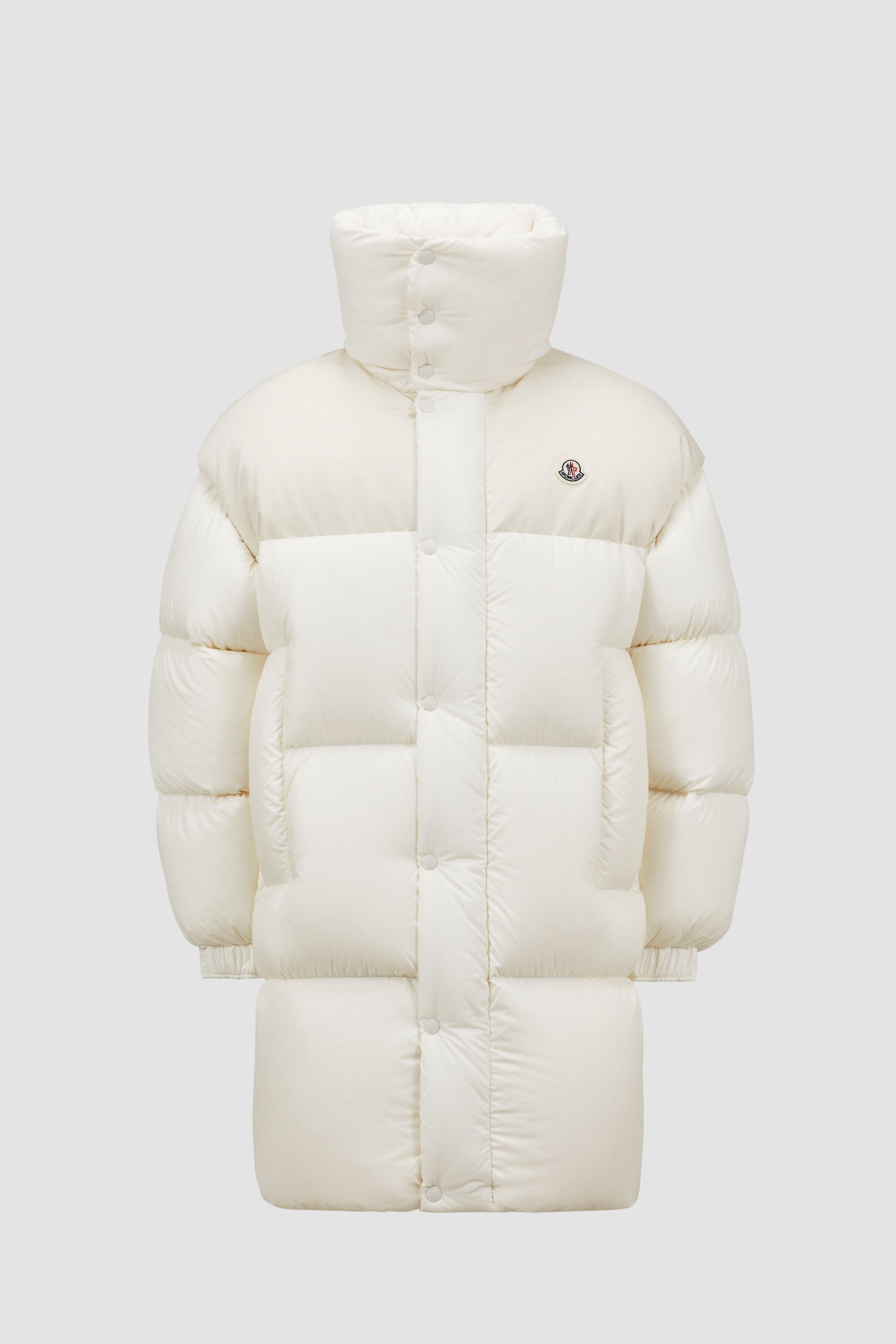 An AI-powered reinvention of our signature design, the groundbreaking Moncler Verone long down jacket for men and women re-iconizes an icon. Innovation takes center stage in the Moncler Verone long puffer. Crafted using cutting-edge artificial intelligence, the long down jacket is made from soft and tear-resistant coated nylon with a matte finish. A truly transformable style, the down coat boasts a detachable double collar and removable sleeves, allowing it to be styled as a vest as well. Logo canvas yoke provides the finishing touch to the 2-in-1 style. - Crafted from coated washed nylon - Polyester lining - Down-filled - Nylon canvas jacquard yoke - Detachable double collar and sleeves - Zipper and snap button closure - Pockets with zipper and snap button closure - Adjustable cuffs - Synthetic material, topstitched and fabric logos SIZE AND FIT - The male model is wearing a size 3 and is 185 cm tall - The male model measures: chest 83 cm, waist 73 cm, hips 87 cm - The female model is wearing a size 0 and is 177 cm tall - The female model measures: bust 82 cm, waist 58 cm, hips 86 cm - Oversized fit COMPOSITION AND CARE EXTERIOR: 100% Polyamide / Nylon; LINING: 100% Polyester; YOKE: 100% Polyamide / Nylon; PADDING: 90% Down, 10% Feather Hand wash; Do not bleach; Do not tumble dry; Ironing maximum temperature 110°C - without steam; Do not dry clean; Do not professionally wet clean; Flat dry in the shade; Wash separately; do not soak; It is advisable to wash and iron the garment on reverse.; Do not twist or wring; Do not iron decorations Product code J20911A002125985T034 Made in Romania