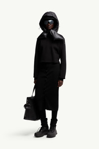 Easy to dress up or down, this Moncler x EE72 by Edward Enninful sweatshirt is characterized by a streamlined design. Echoing the Moncler x EE72 by Edward Enninful collection's futuristic style, this crew neck is crafted from neoprene. Forming a sleek set, the Moncler Genius sweatshirt pairs effortlessly with a matching skirt. DETAILS - Crafted from viscose neoprene - Crew neck - Long sleeves - Logo patch SIZE AND FIT - label.sizeandfitmodels.woman.1 - Loose fit COMPOSITION BASE FABRIC: 95% Viscose / Rayon, 5% Elastane / Spandex Product code K24038G0000289AYC999 Made in Italy