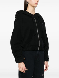 black front zip fastening drawstring hood two front pouch pockets logo patch at the chest Size & Fit Model Measurements: Height: 1.78 m Bust/Chest: 84.0 cm Hips: 92.0 cm Waist: 62.0 cm Model wears size XS Fabric and Care Designer Style ID: J209T8G00001899WC Designer Colour: 999 BLACK Composition: Cotton 100% Washing instructions: Machine Wash Made in Turkey