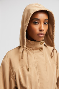 Inspired by the concept of utility, the Nades parka for women pairs hard-working fabrics with practical features. The Nades parka reimagines the field jacket with a soft, feminine shape. The design is crafted from a resistant and comfortable nylon blend with a matte finish. Supremely functional, spacious front patch pockets and a pull-out hood enhance the design. Inspired by desert landscapes, the style comes in understated earthy tones. DETAILS - Crafted from a polyester and nylon blend - Micro mesh lining - Pull-out hood - Zipper and snap button closure - Elastic waistband - Patch pockets SIZE AND FIT - Loose fit - Adjustable, elasticized waistline COMPOSITION EXTERIOR: 70% Polyester, 30% Polyamide / Nylon; LINING: 100% Polyamide / Nylon; HOOD: 70% Polyester, 30% Polyamide / Nylon Product code K10931A00101598E622G Made in Romania