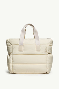 Crafted from materials, this padded diaper bag is a functional design. Featuring practical pockets and an adjustable shoulder strap, this padded diaper bag is a spacious and versatile design. Crafted from materials, the item ensures softness and comfort. The accessory comes with a terrycloth changing mat. DETAILS - Crafted from nylon - Nylon lining - Padded - Leather-trimmed edges and pockets - Adjustable shoulder strap with snap button, easily attached to a stroller - Zipper closure - Four outer pockets - Four inner pockets - Changing mat in terrycloth and nylon - Measurements L 38 cm x H 34 cm x W 21 cm COMPOSITION PART A: EXTERIOR: 100% Polyamide / Nylon; LINING: 100% Polyamide / Nylon;LEATHER INSERTS: CALF; PART B: 1 MATERIAL: 100% Polyamide / Nylon; 2 MATERIAL: 100% Cotton; PADDING: 100% Polyester;LEATHER INSERTS: CALF Product code K29515D00001M6811268 Made in Romania