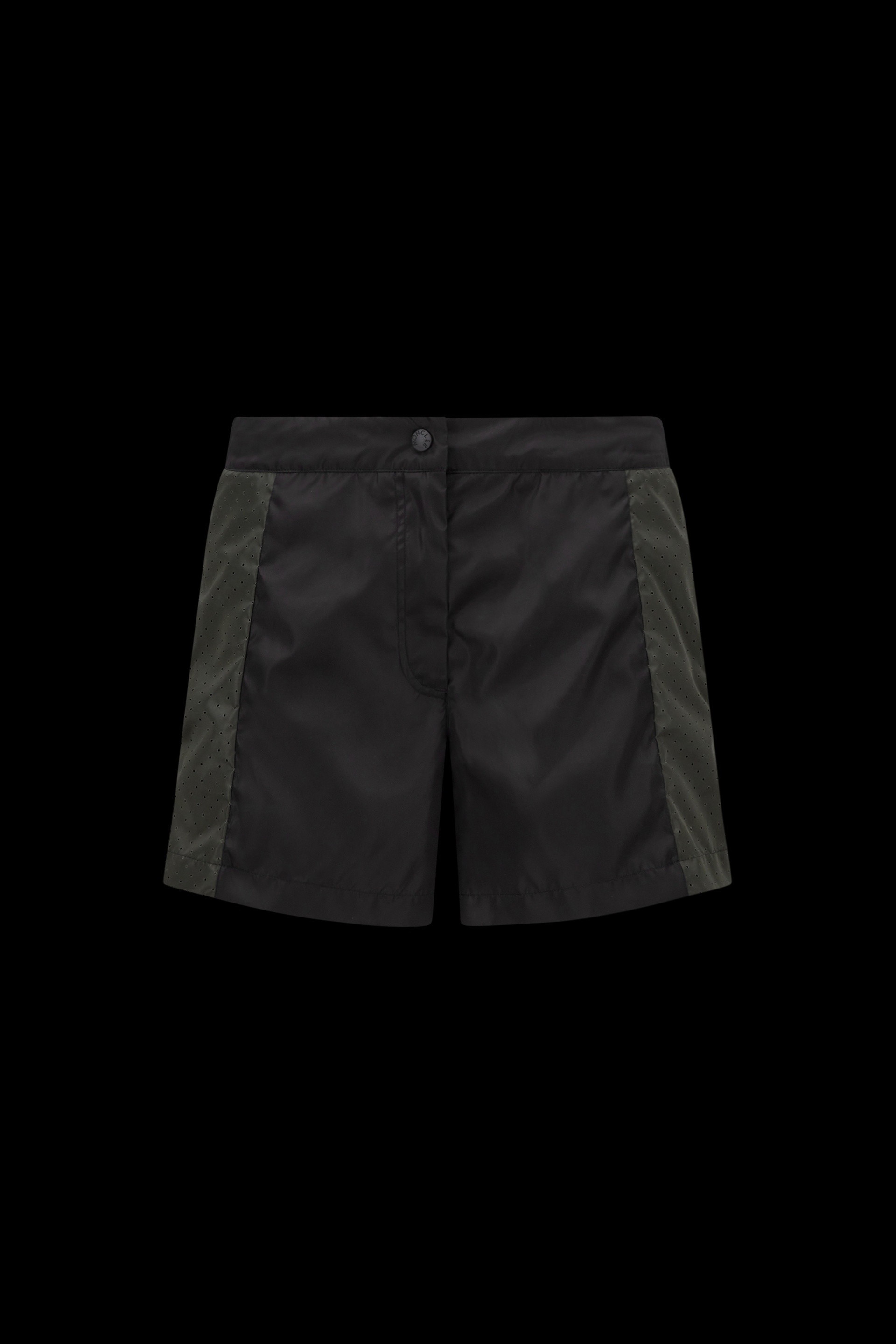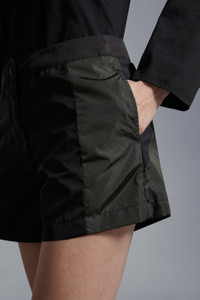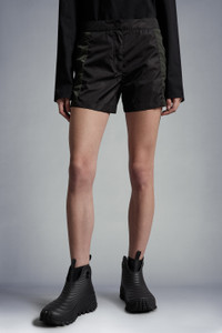 Entirely crafted from lower impact materials, these nylon shorts for women are emblematic of Moncler's Born to Protect philosophy. Crafted from recycled nylon, these shorts are featured in a futuristic, yet muted color palette. Discretely adorned with a brand logo, the shorts pair perfectly with other pieces from the Moncler Born to Protect collection. - 100% recycled nylon fabric - 100% recycled nylon and polyester zipper and button closure - 100% recycled polyester thread embroidery - 100% recycled felt logo patch - Side laser-cut holes SIZE AND FIT - The model is wearing a size 40 and is 178 cm tall - The model measures: bust 77 cm, waist 60 cm, hips 89 cm COMPOSITION AND CARE EXTERIOR: 100% Polyamide / Nylon; 1 MATERIAL: 100% Polyamide / Nylon; 2 MATERIAL: 100% Polyamide / Nylon Wash max 30°C - Very mild process; Do not bleach; Do not tumble dry; Ironing maximum temperature 110°C - without steam; Dry cleaning with hydrocarbons - mild process; Professional wet cleaning - very mild process; Flat dry in the shade; Wash separately; Iron with a cloth between; It is advisable to wash and iron the garment on reverse.; PROTECT TRIMS WHILE WASHING Product code I10932B00012539ZD998 Made in Italy