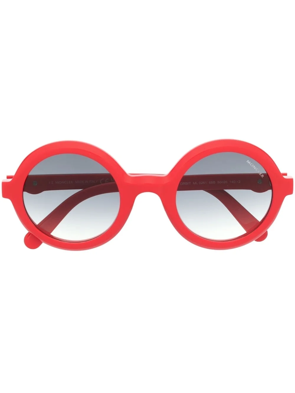 Orbit round-frame sunglasses Highlights - Poppy red - Acetate - Tinted lenses - Round frame - Logo plaque at the arm - Straight arms - Curved tips - These glasses come with a protective case. Made in Italy Composition Acetate 100% SIZE & FIT Measurement Arm Length 5.51 in(14 cm) Bridge Width 1.02 in(2.6 cm) Lens Diameter 1.96 in(5 cm) Total Width 5.7 in(14.5 cm)