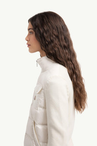 Part of a wardrobe that moves with the seasons, a down-filled front enhances this wool cardigan for women. Ready for any time of year, a padded front allows this cardigan to double as outerwear during warmer days. The design is made from wool, ensuring a soft feel and classic look. DETAILS - Crafted from wool - Nylon lining - Down-filled nylon front - Gauge 5 - Zipper closure - Pockets with button closure - Logo patch SIZE AND FIT - The model is wearing a size XS and is 177 cm tall COMPOSITION OUTER FRONT: 100% Polyamide / Nylon; BASE FABRIC: 100% Virgin wool; FRONT LINING: 100% Polyamide / Nylon; COLLAR: 100% Polyamide / Nylon; PADDING: 90% Down, 10% Feather Product code L10939B00023M7774034 Made in Moldova