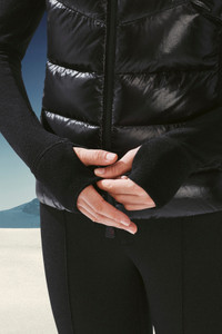 Designed to provide warmth and protection on the slopes, this padded fleece sweatshirt for women is fit for activities and leisure. Fit for mountain sports and après ski fun, this high neck sweatshirt is crafted from stretch polar fleece. A down-filled front adds warmth, while water resistant inserts and zippers, along with wrist gaiters enhance the design's protective qualities. - Crafted from stretch polar fleece - Nylon laqué front and hood - Nylon lining - Down-filled - Adjustable hood - YKK® AquaGuard® Highly Water Resistant zipper closure COMPOSITION AND CARE OUTER FRONT: 100% Polyamide / Nylon; FRONT LINING: 100% Polyamide / Nylon; HOOD: 100% Polyamide / Nylon; PADDING: 90% Down, 10% Feather; SLEEVES: 94% Polyester, 6% Elastane / Spandex; BACK: 94% Polyester, 6% Elastane / Spandex Wash max 30°C - Mild process; Do not bleach; Do not tumble dry; Ironing maximum temperature 110°C - without steam; Dry cleaning in tetrachloroethene or with hydrocarbons - mild process; Professional wet cleaning - mild process; Flat dry in the shade; Wash separately; It is advisable to wash and iron with the garment on reverse. Product code H20988G5000080093999 Made in Moldova