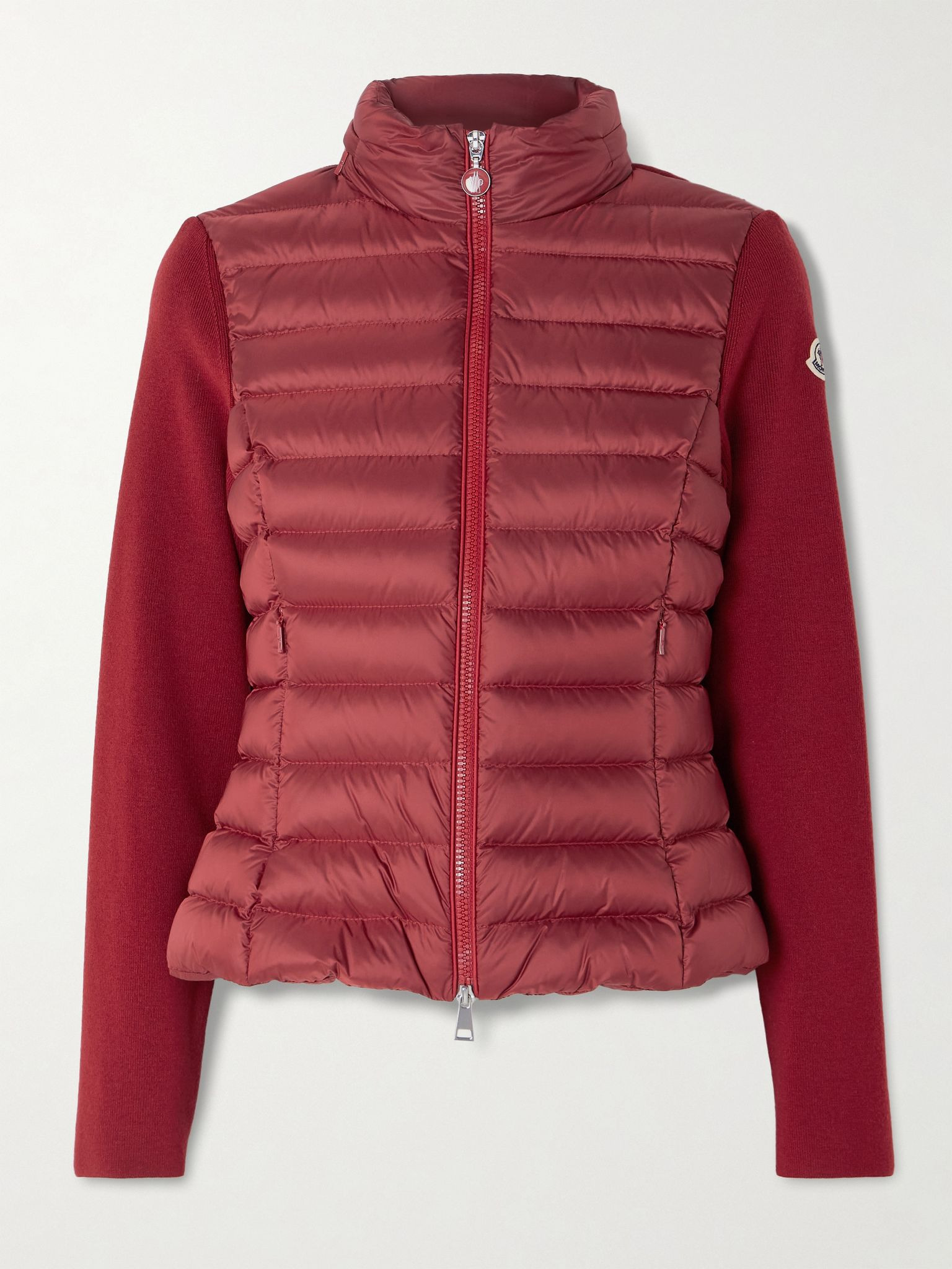 Moncler's cardigan may look like a lightweight layer, but the quilted front panels are filled with cozy down that'll keep you exceptionally warm. It's made from wool-blend and appliqued at one of the slim-fitting sleeves. Size & Fit - Size 0 = XS, 1 = S, 2 = M, 3 = L, 4 = XL, 5 = XXL, 6 = 3XL - Fits true to size, however those who are between sizes should take the larger size - Designed for a slim fit - Padded, non-stretchy fabric - Model is 180cm/ 5'11" and is wearing the designer's size 2 Model measurements: - Bust: 80cm/ 31.5" - Waist: 65cm/ 25.5" - Hip: 89cm/ 35" Details & Care - Red wool-blend and shell - Two-way zip fastening through front - Fabric1: 95% virgin wool, 5% polyester; fabric2: 100% polyamide; filling: 90% down, 10% feathers (Goose) - Dry clean