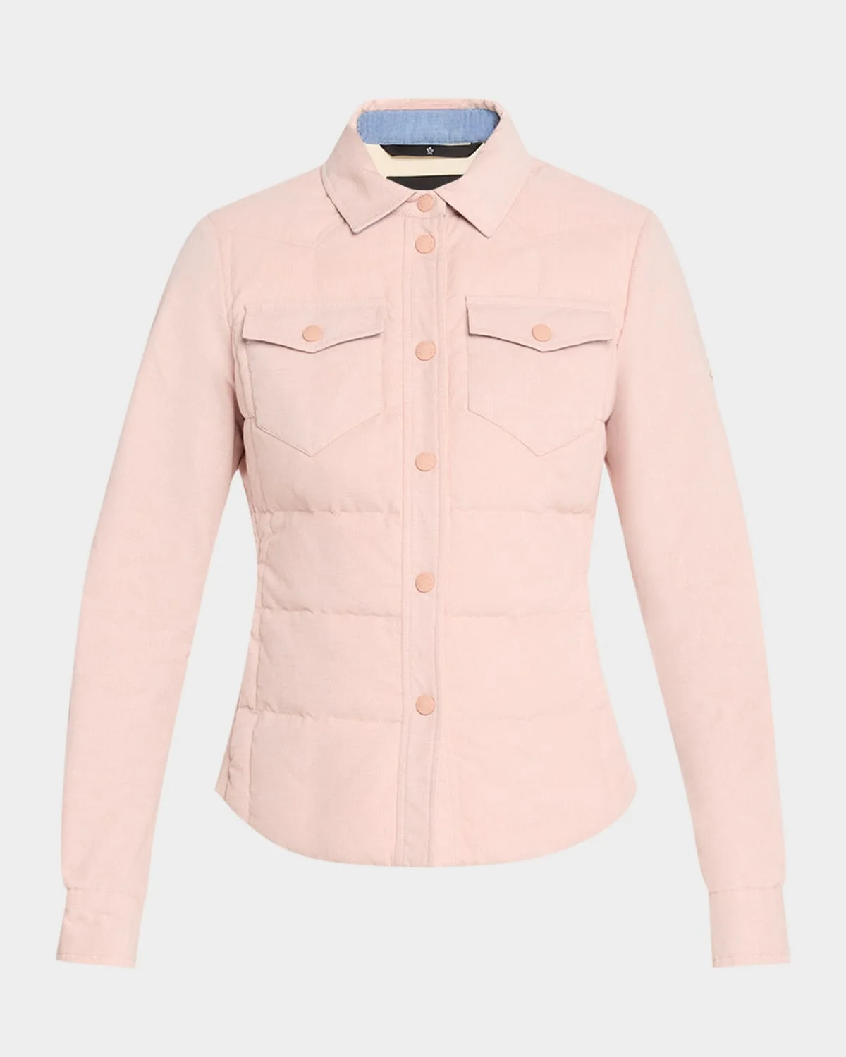 Moncler Grenoble corduroy shirt designed with padded bodice and a detachable carbineer & nbsp; Features a signature embroidered logo patch on the left sleeve & nbsp; Point collar Long sleeves with snap cuffs Dual chest pockets Slim fit Hem sits at the hip Snap-front & nbsp; Cotton Fill: Polyester Machine wash cold Imported SIZE & FITModel measurements: 5 & apos;10" tallModel is wearing a US size 4/Small