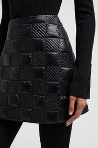 Reimagining the iconic '60s pattern, this mini skirt for women features the checkerboard pattern as an intricate quilted motif. Channeling the '60s, this nylon mini skirt features a checkerboard pattern as a quilted design. Lightly padded, the mini skirt adds a textural element to day and evening looks. DETAILS - Crafted from embroidered nylon - Padded - Inner grosgrain waistband - Side zipper closure SIZE AND FIT - The model is wearing a size 40 and is 175 cm tall - The model measures: bust 75 cm, waist 56 cm, hips 86 cm COMPOSITION EXTERIOR: 100% Polyamide / Nylon; LINING: 100% Polyamide / Nylon; PADDING: 100% Polyester; Embroidery: 77% Cotton, 23% Polyester Product code J20932D00001788LM999 Made in Hungary
