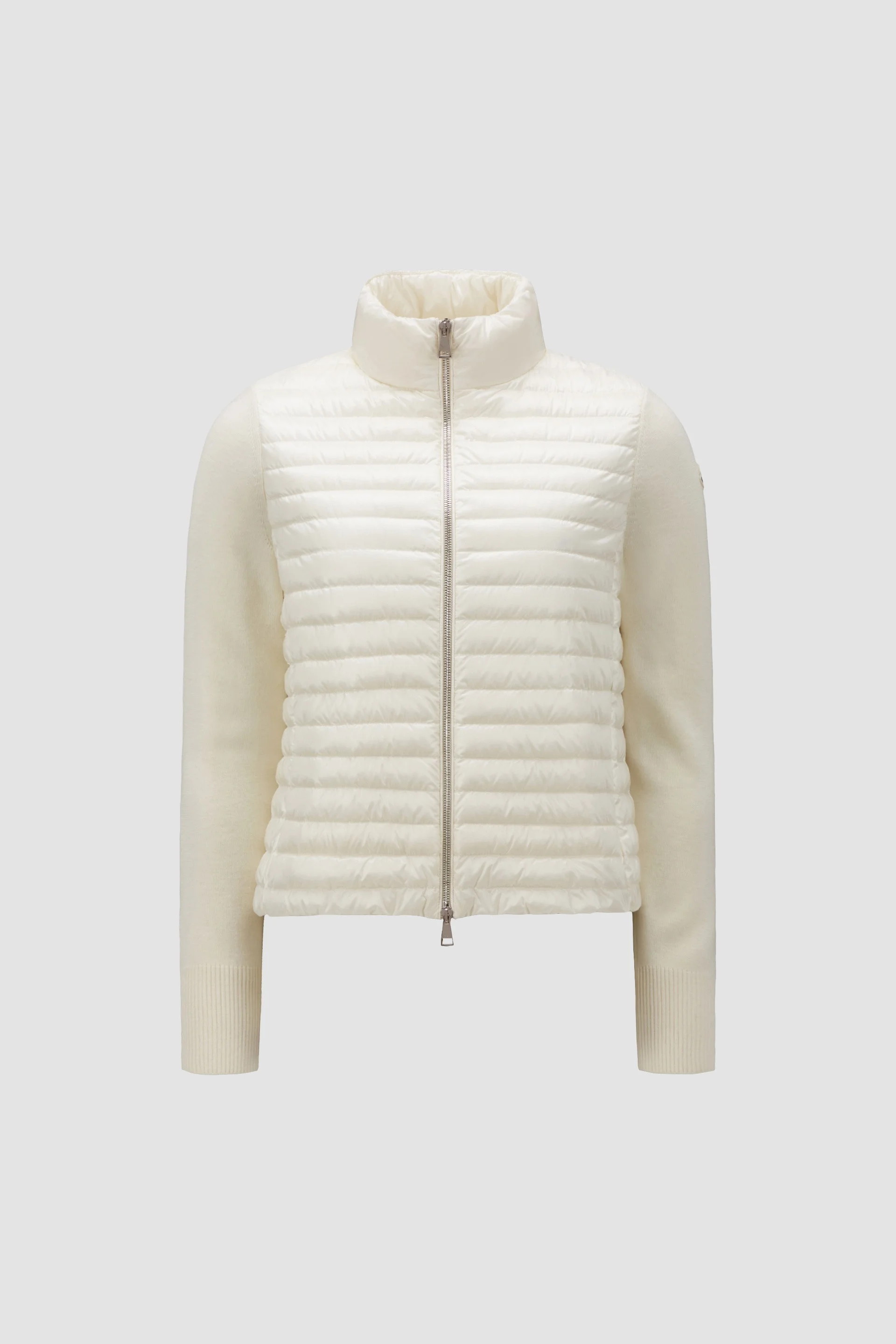 A year-round design, this wool cardigan for women is enhanced with a down-filled front. A classic Moncler design, this cardigan can be worn alone when weather permits, or layered under jackets and coats when the temperatures drop. Crafted from wool, the knit features a down filled-front that provides warmth and protection. DETAILS - Crafted from ultra-fine wool - Nylon leger brillant lining - Down-filled nylon leger front - Plain knit - Gauge 14 - Zipper closure - Zipped pockets SIZE AND FIT - Loose fit COMPOSITION BASE FABRIC: 100% Polyamide / Nylon; BODY LINING: 100% Polyamide / Nylon; PADDING: 90% Down, 10% Feather; SLEEVES: 100% Virgin wool Product code K10939B00026M1131030 Made in Moldova
