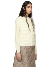Knit virgin wool and DIST-certified down-filled quilted nylon satin cardigan. · Paneled construction · Crewneck · Press-stud closure · Patch pockets · Tricolor felted logo patch at sleeve · Rib knit cuffs and back hem · Partially lined Supplier color: White Fill 1: 90% goose down, 10% feather. Body 1: 100% virgin wool. Body 2: 100% polyester. Fill 2: 100% polyester. Made in Turkey 242111F061027